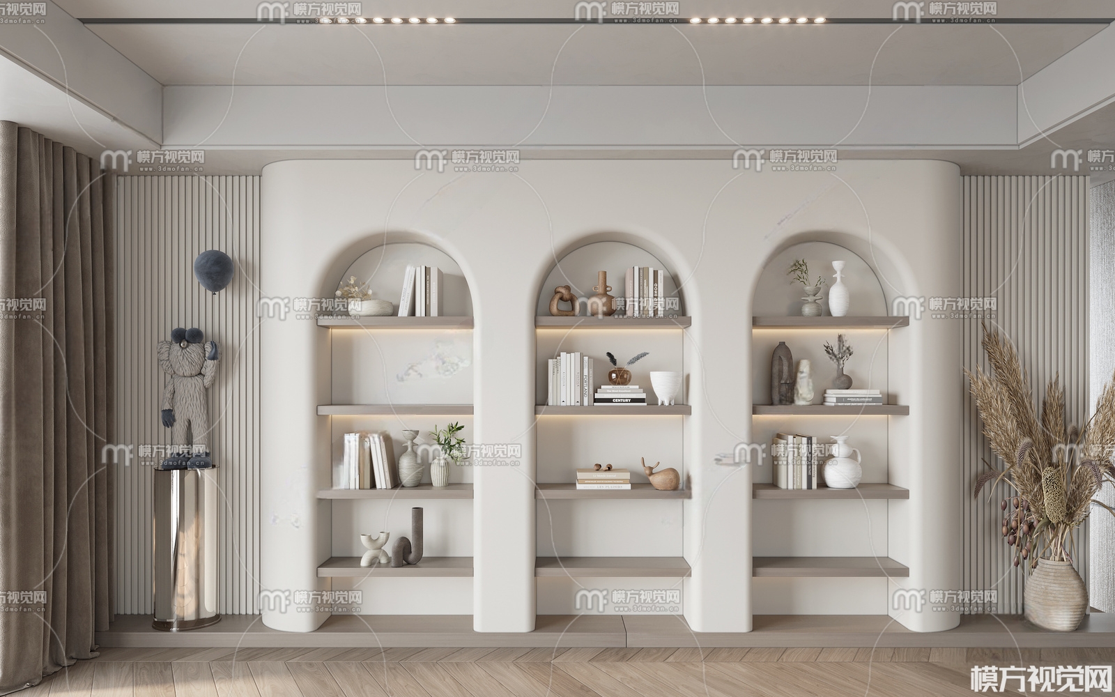 现代书柜摆件3D模型(ID:0012864)