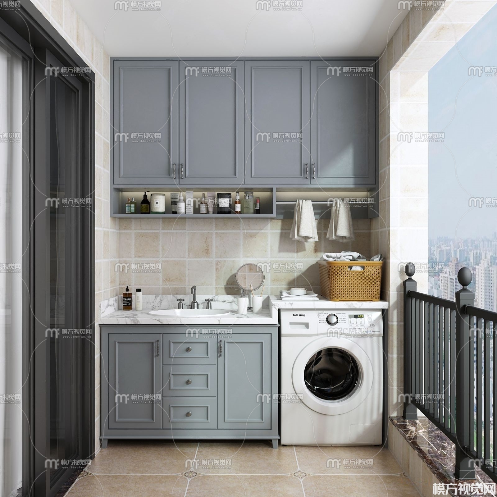 简美阳台洗衣房模型3D模型(ID:0012903)