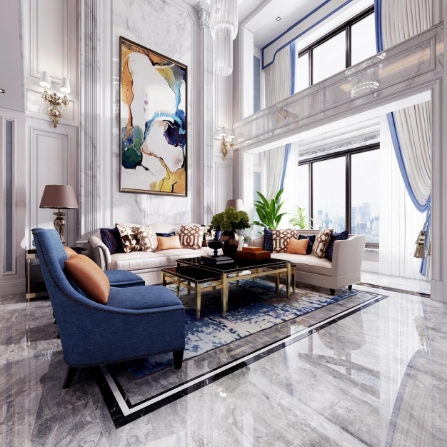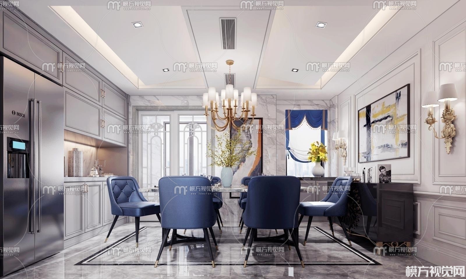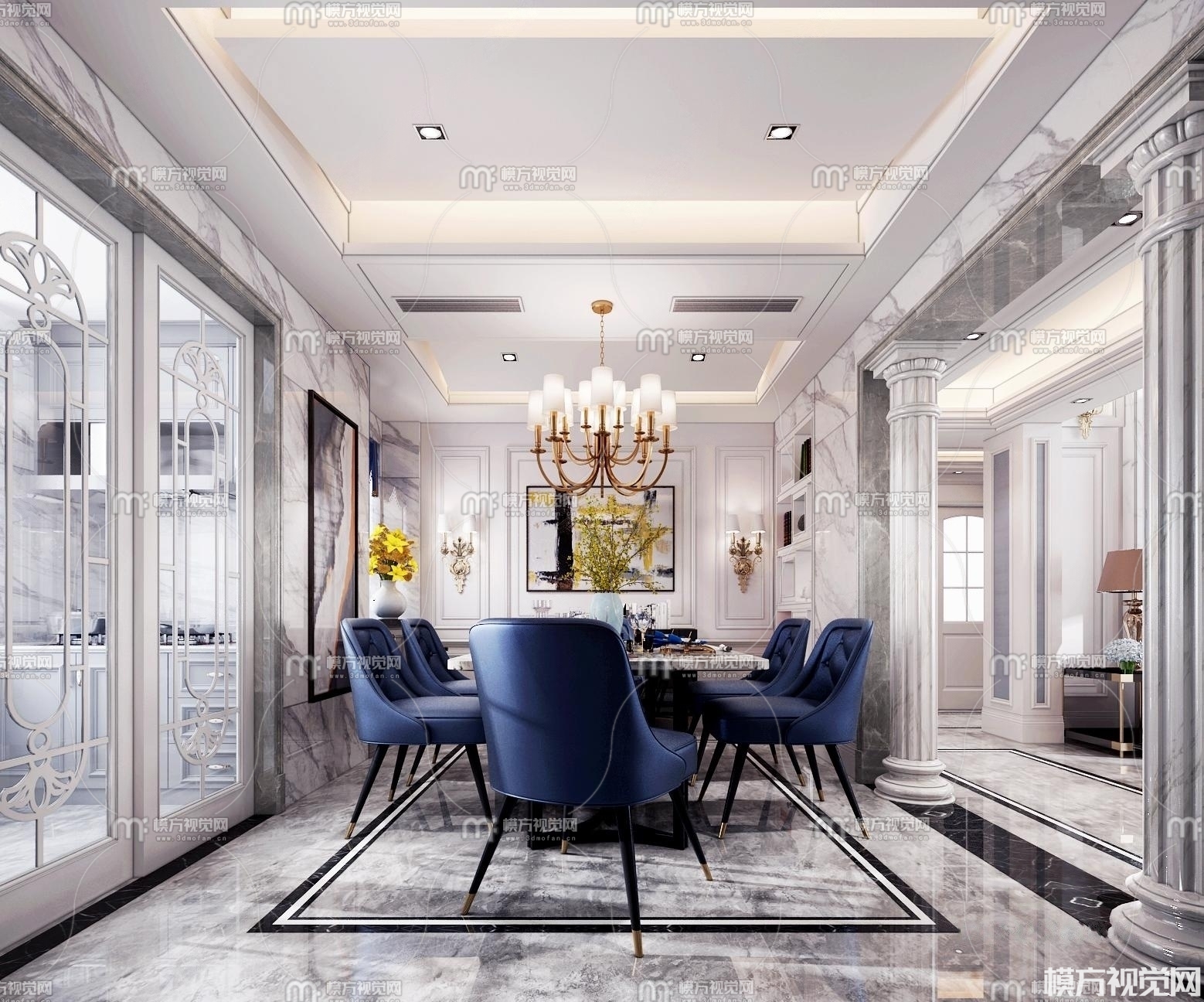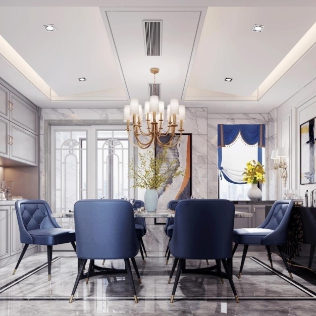 简欧别墅客厅餐厅3D模型(ID:0012914)
