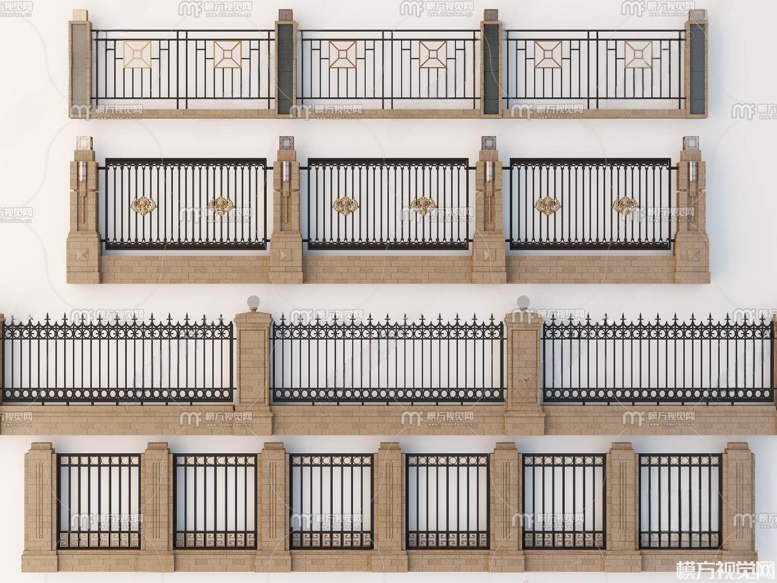 简欧铁艺围墙院墙3D模型(ID:0013015)