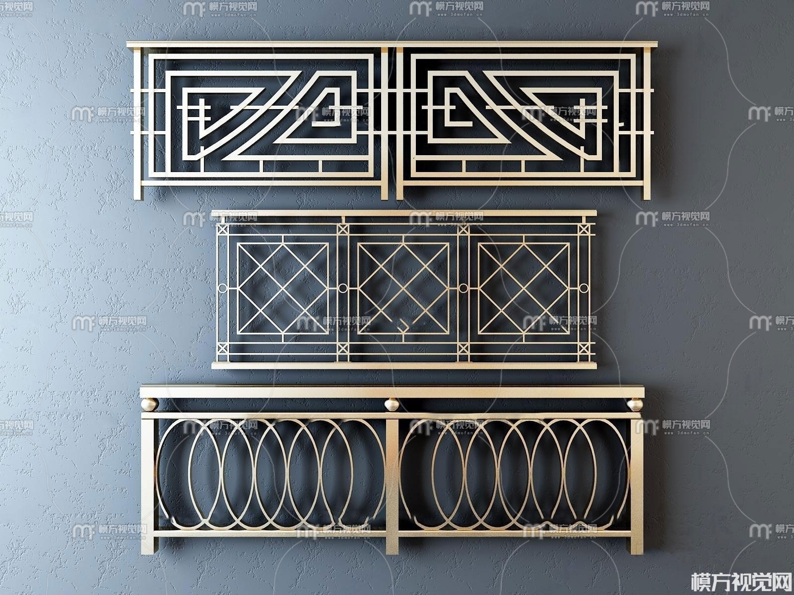现代金属楼梯栏杆3D模型(ID:0013054)