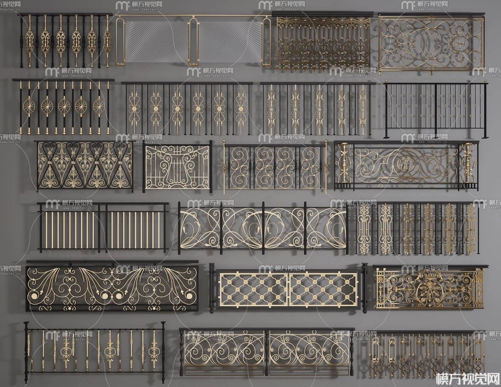 简欧铁艺栏杆3D模型(ID:0013055)