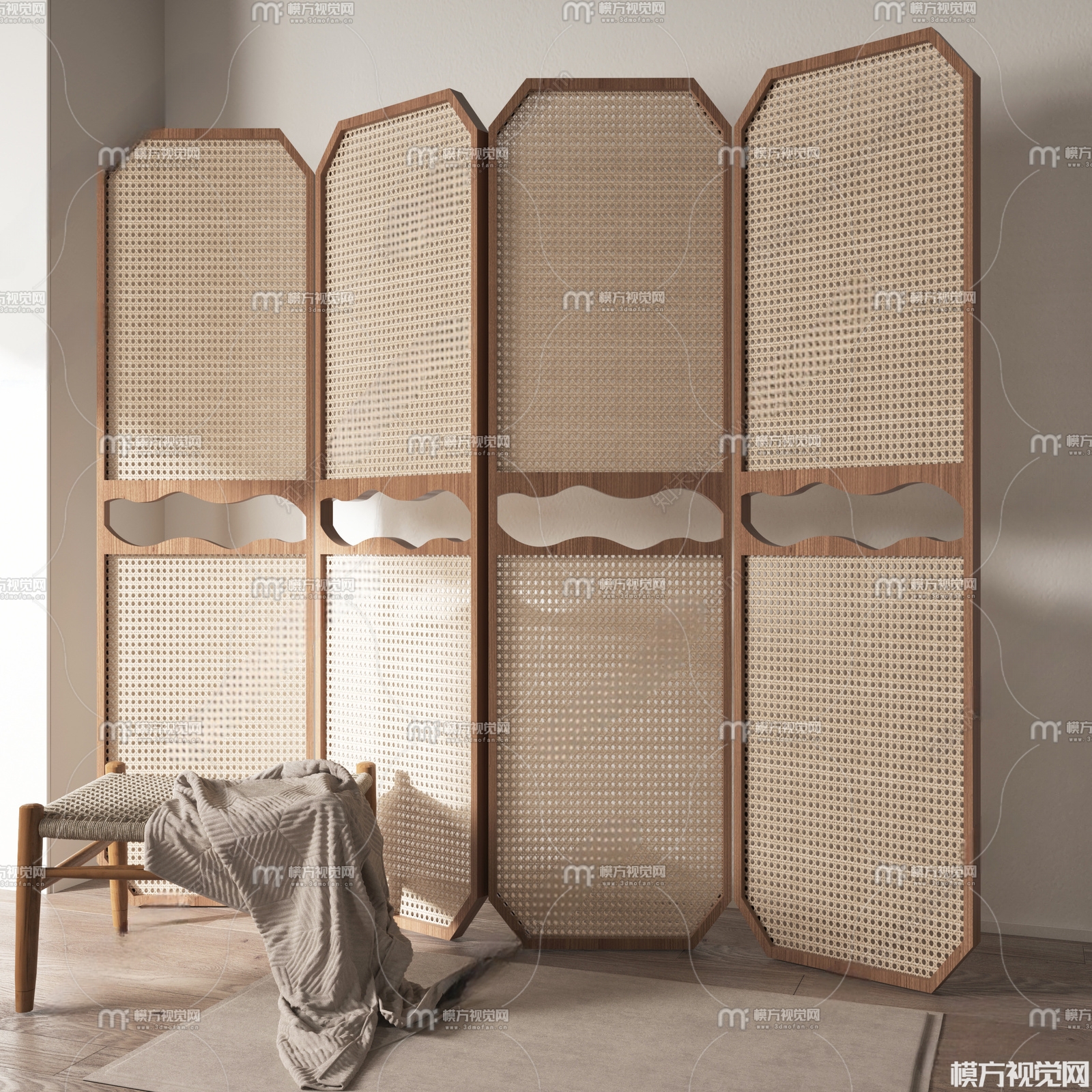 侘寂风隔断屏风3D模型(ID:0013197)