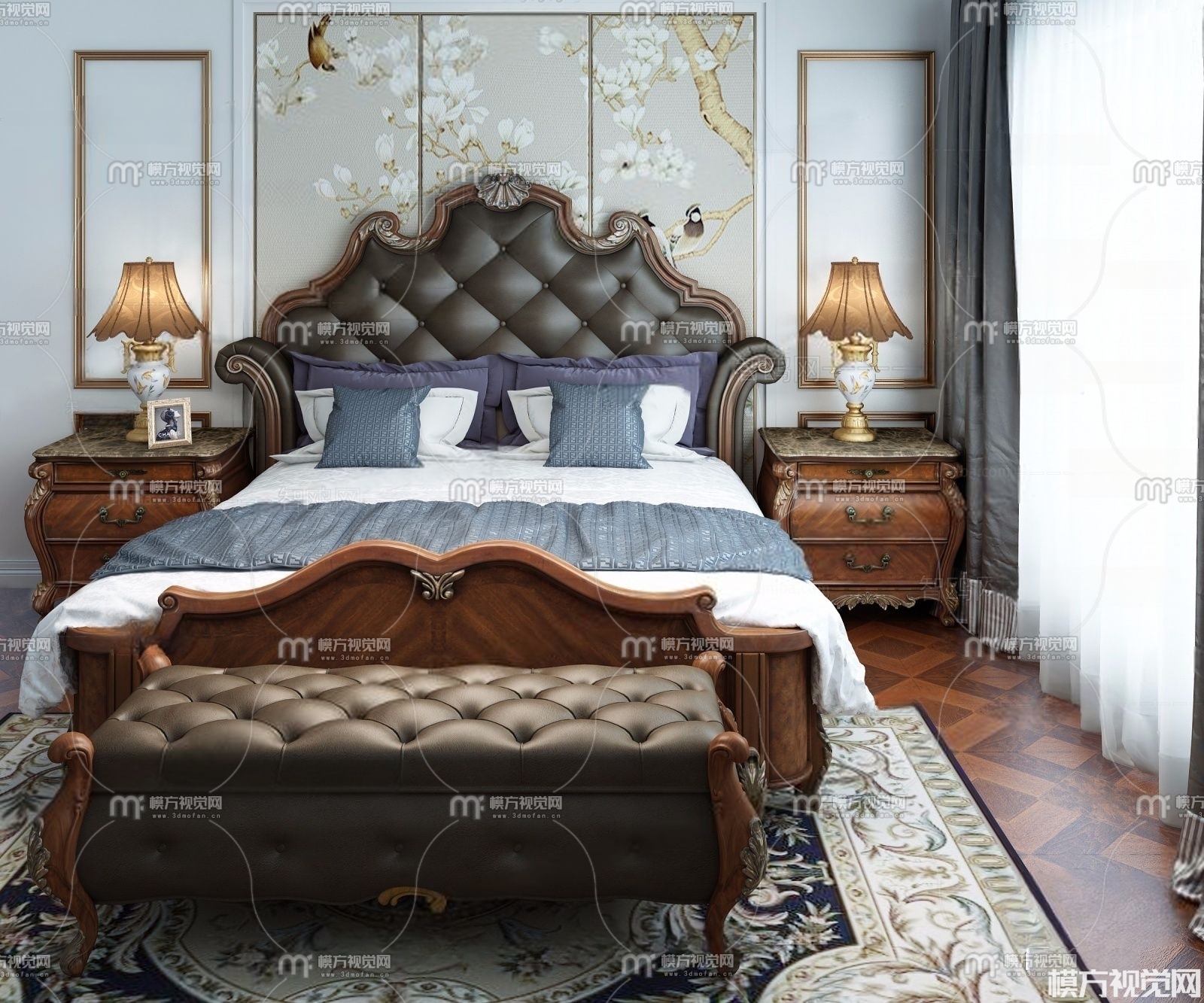 美式双人床3D模型(ID:0001337)