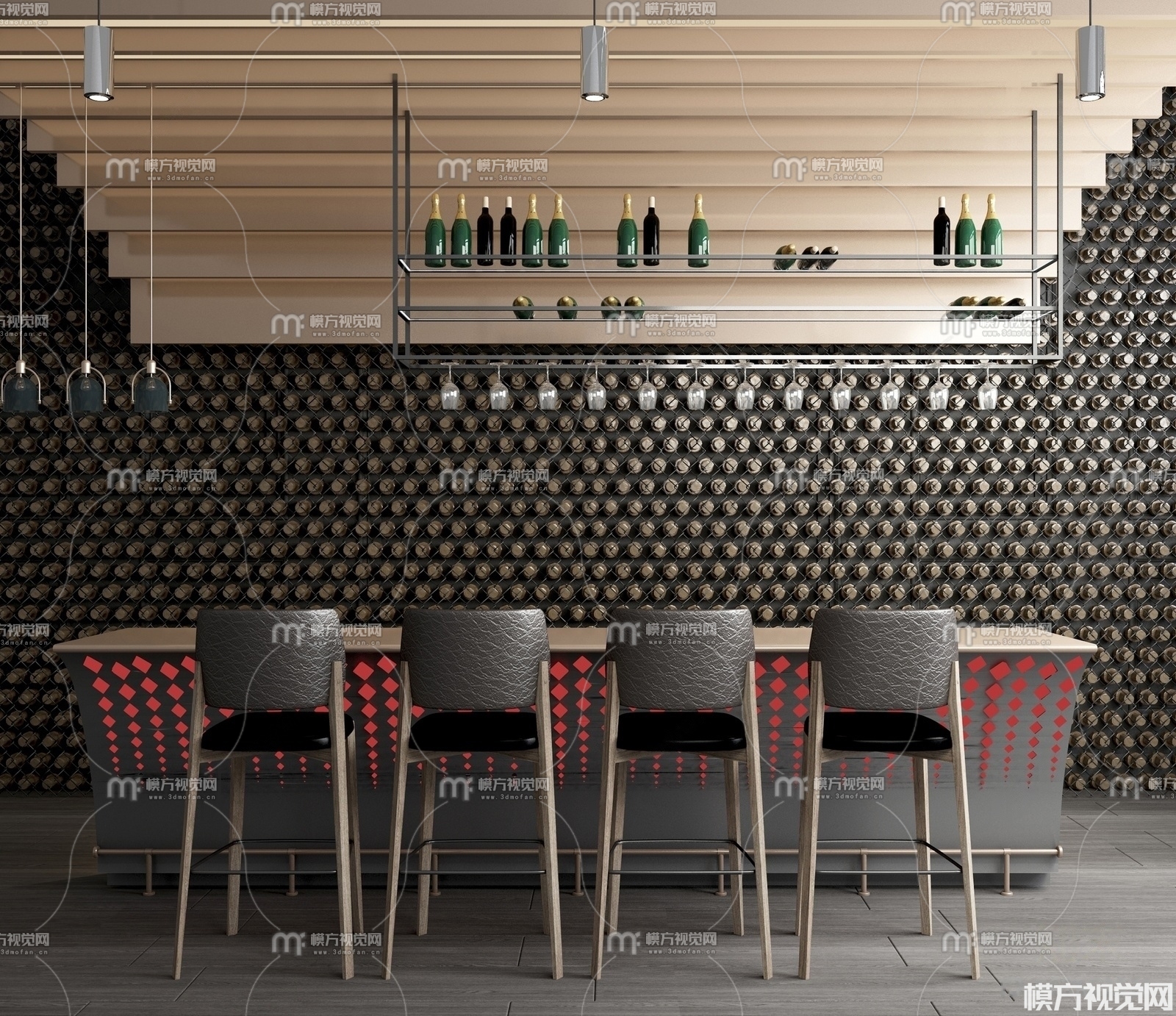 工业风吧台吧椅酒架3D模型(ID:0013421)