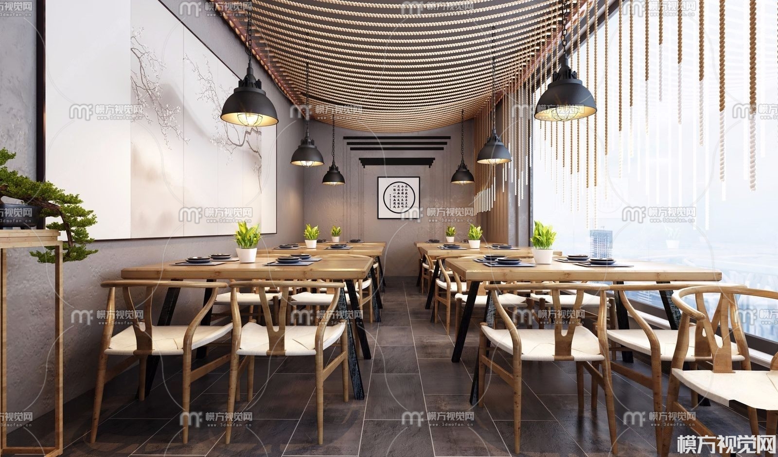 工业风餐厅3D模型(ID:0013424)