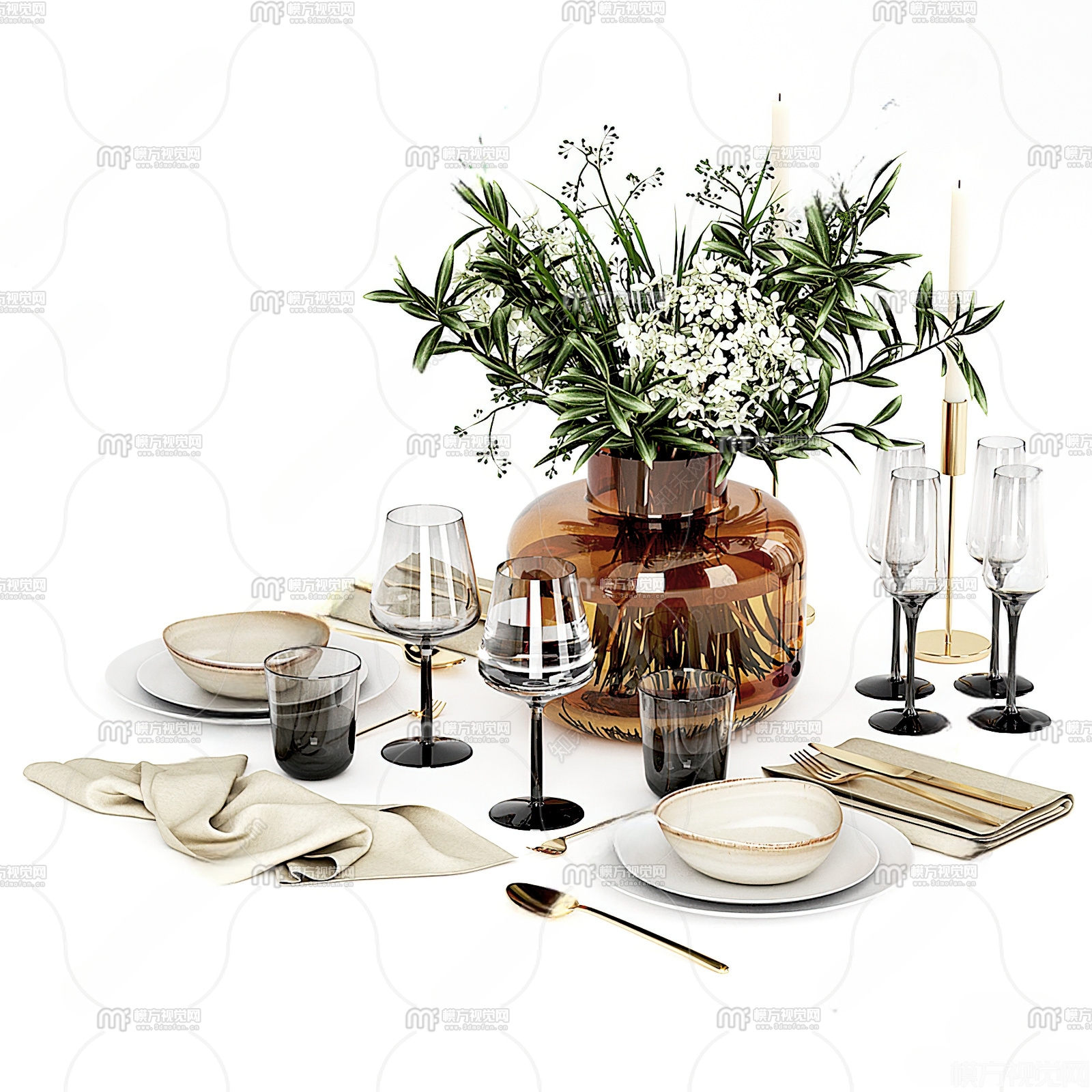 现代餐具组合3D模型(ID:0013514)