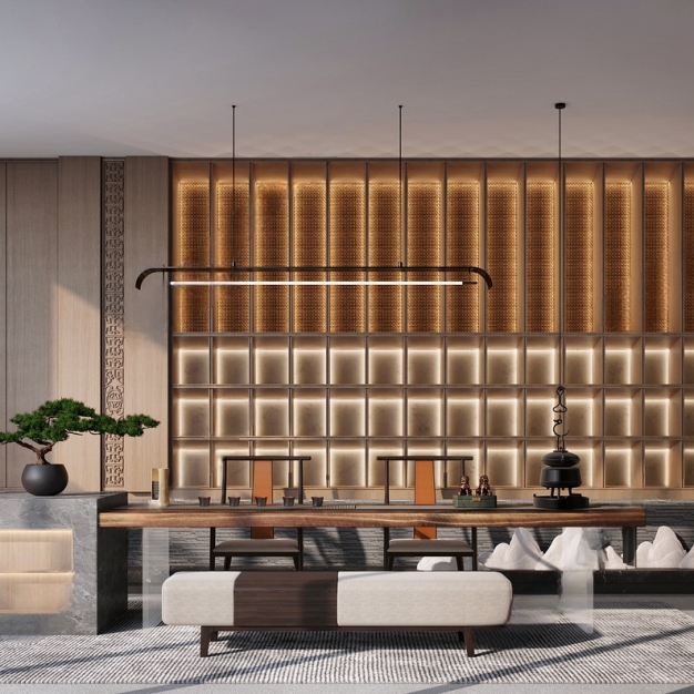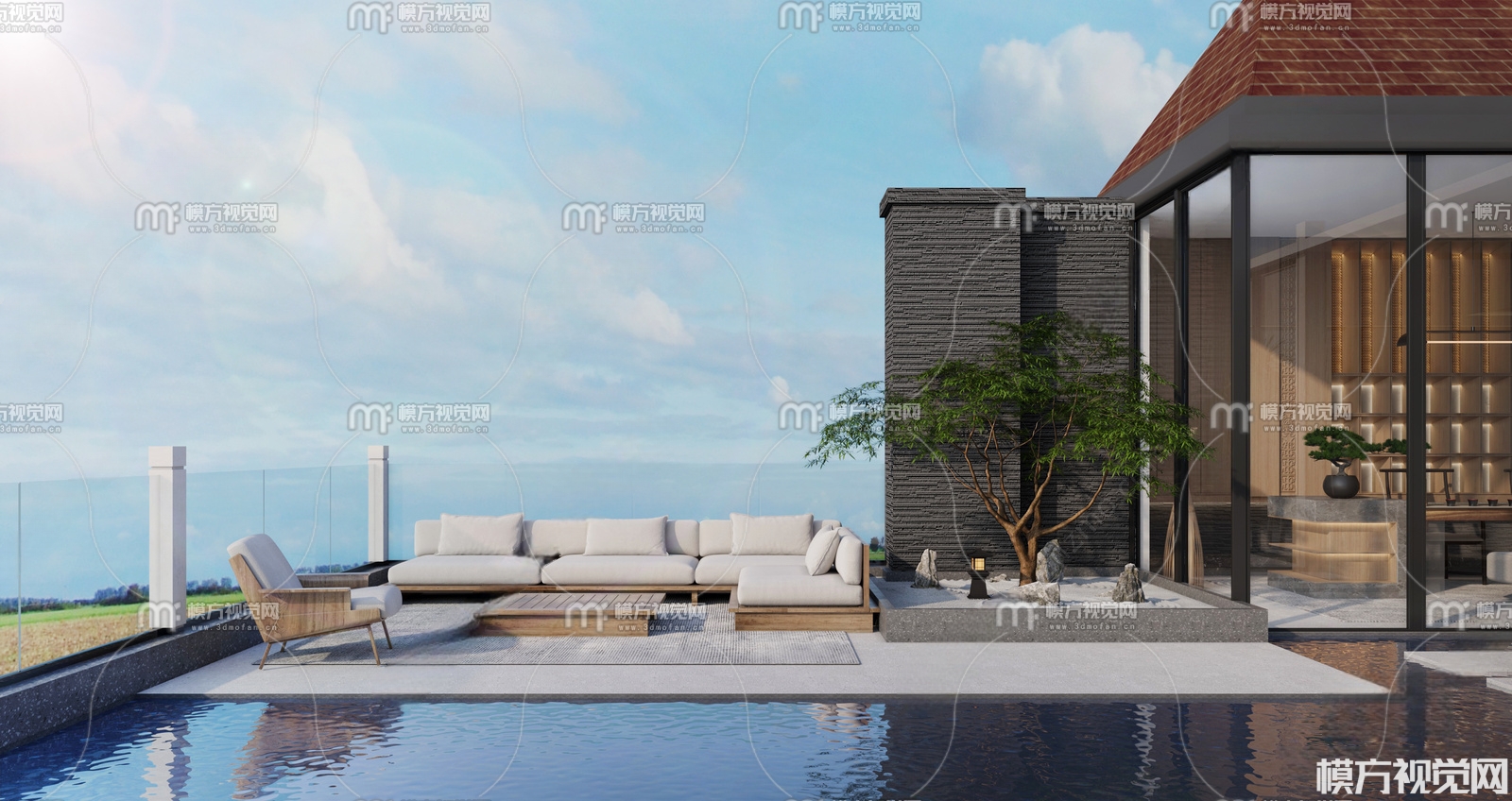 新中式户外泳池3D模型(ID:0013598)