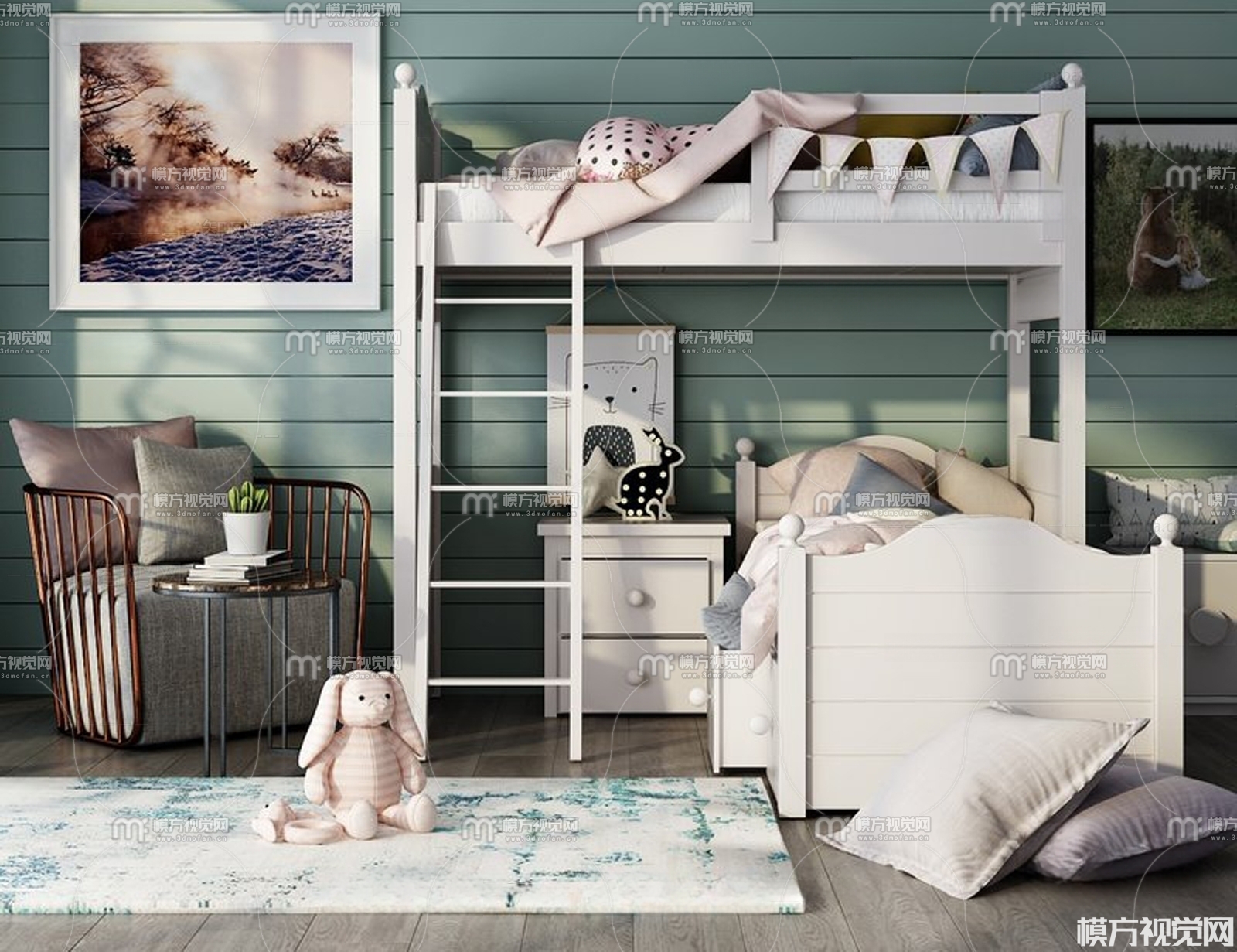北欧儿童床上下双层床3D模型(ID:0013671)