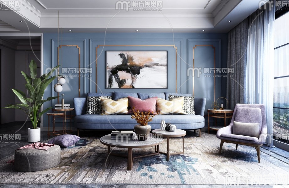 北欧轻奢客厅3D模型(ID:0013719)