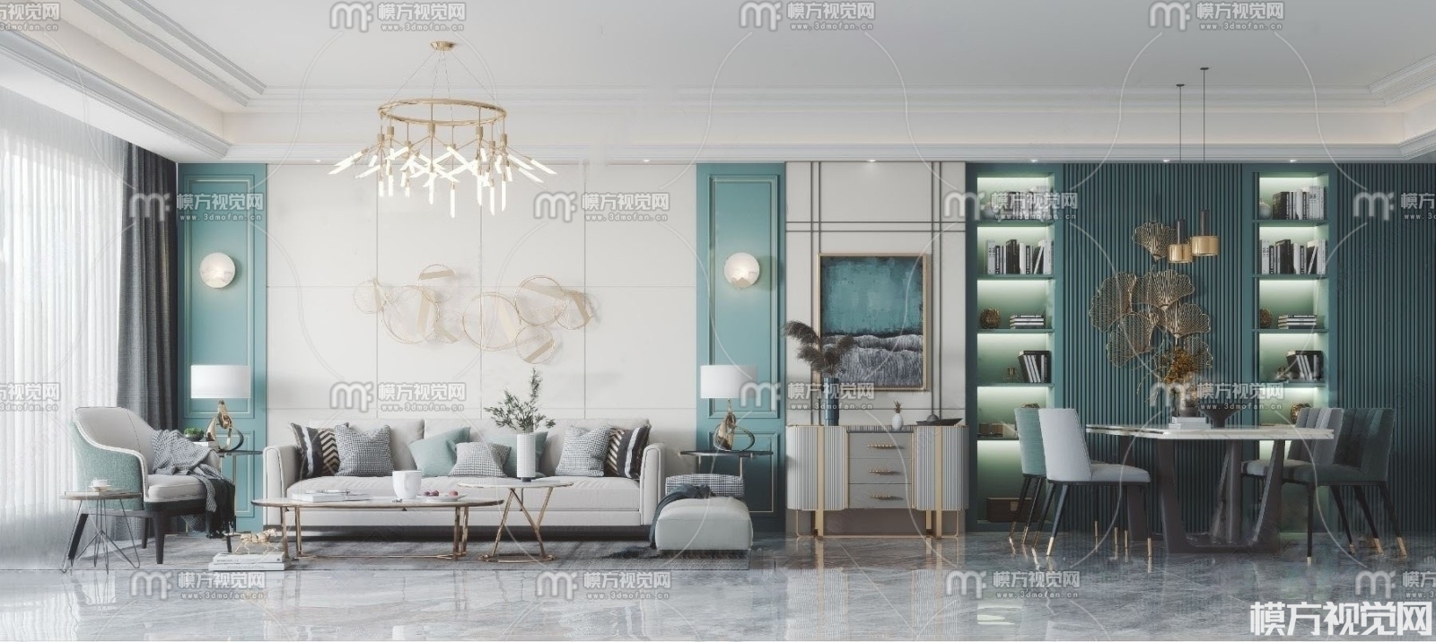 北欧轻奢客厅餐厅3D模型(ID:0013720)