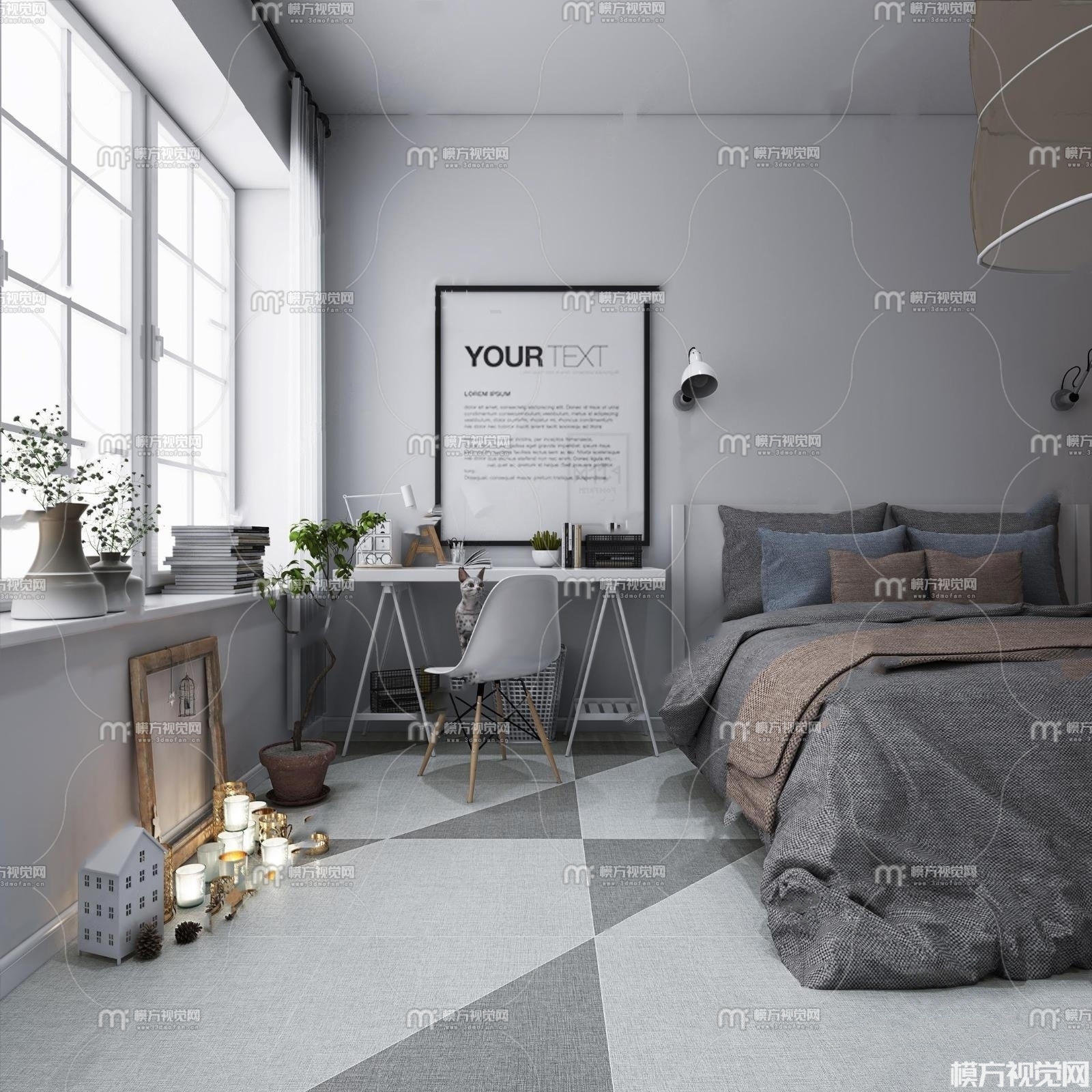 北欧卧室3D模型(ID:0013764)
