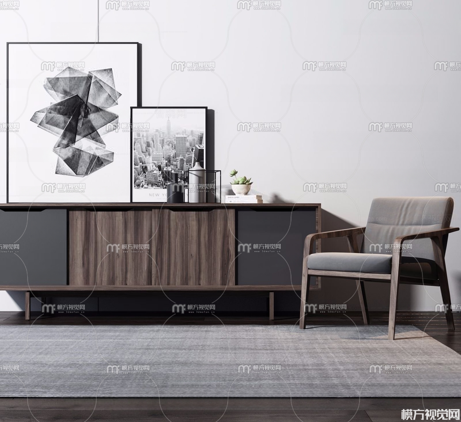 现代电视柜 休闲椅3D模型(ID:0001377)