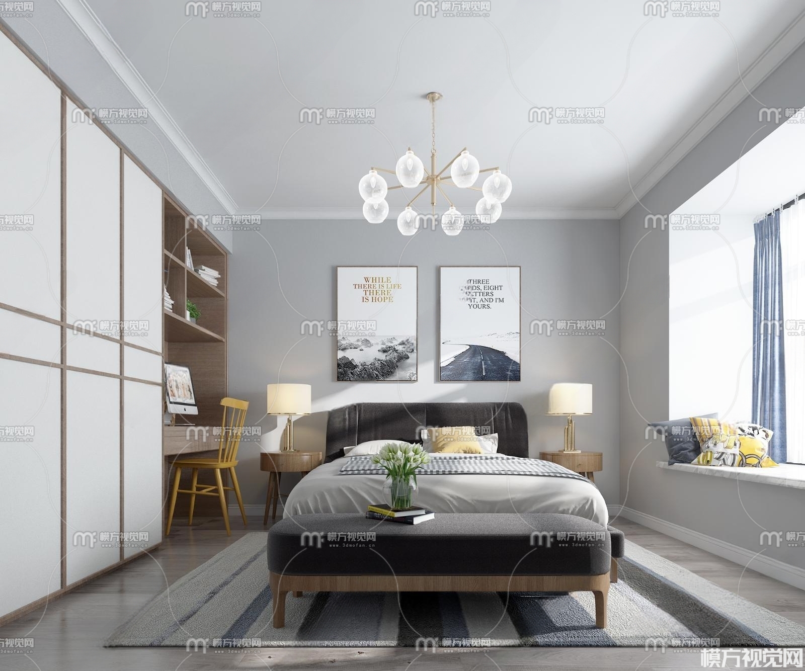 北欧卧室3D模型(ID:0013780)