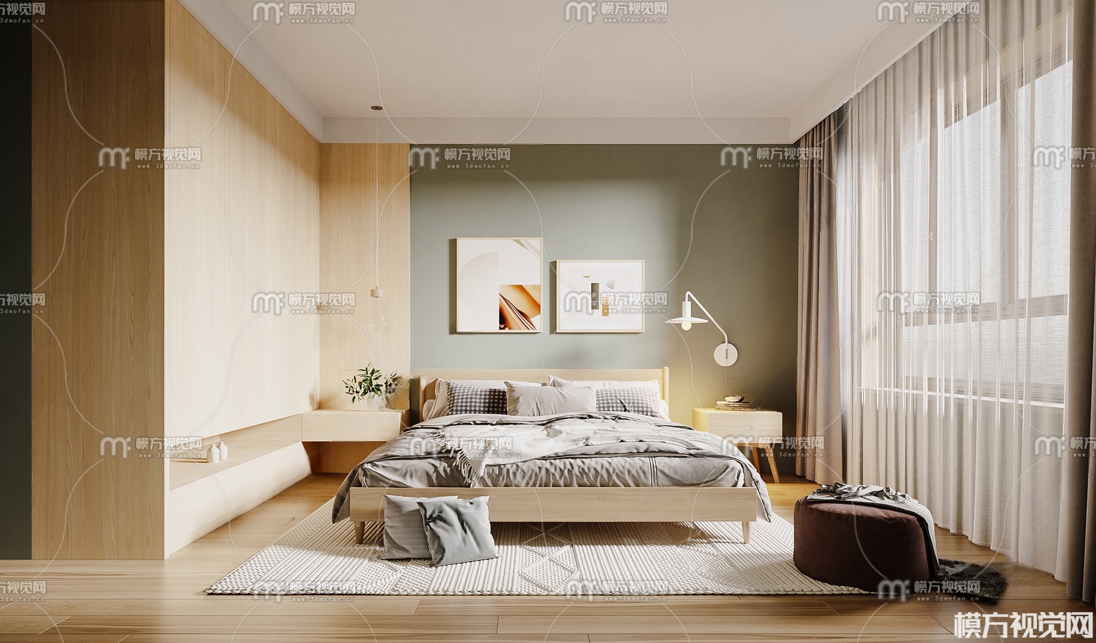北欧卧室主人房3D模型(ID:0013784)