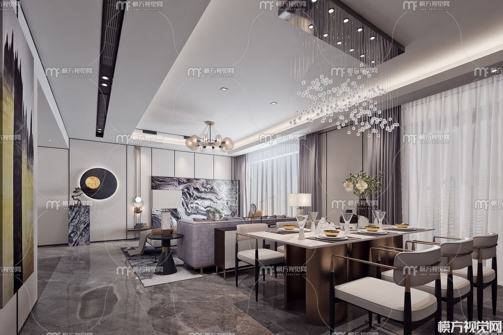 新中式客餐厅3D模型(ID:0013814)