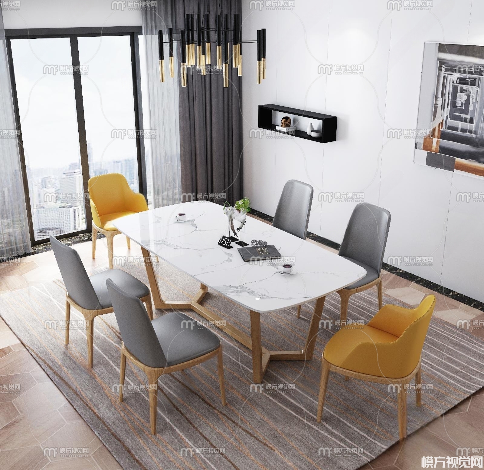 北欧餐桌椅3D模型(ID:0013849)