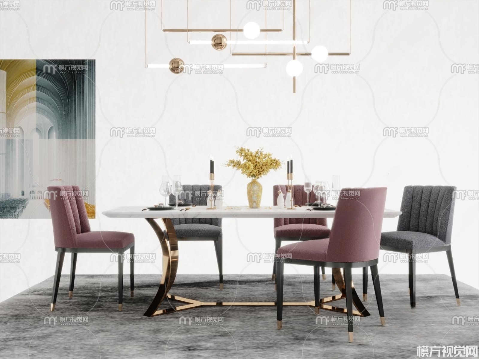 现代餐桌椅3D模型(ID:0013858)