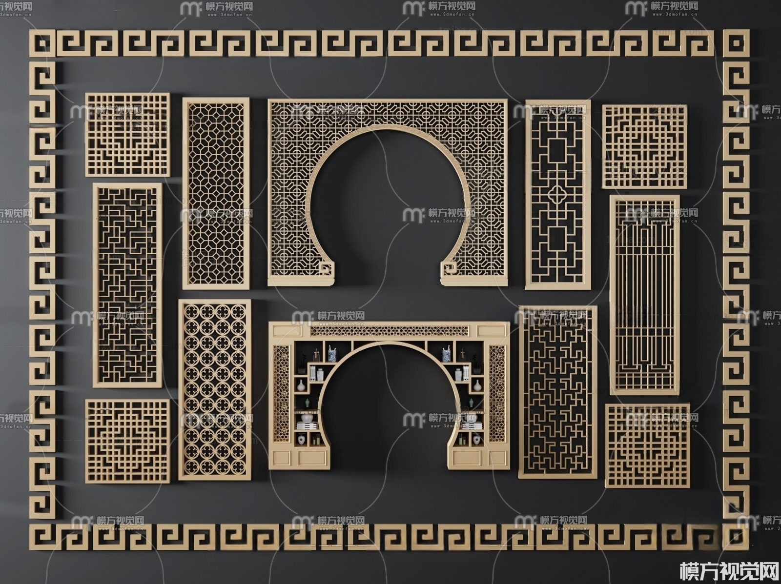 新中式雕花 屏风 隔断 拱门3D模型(ID:0001390)