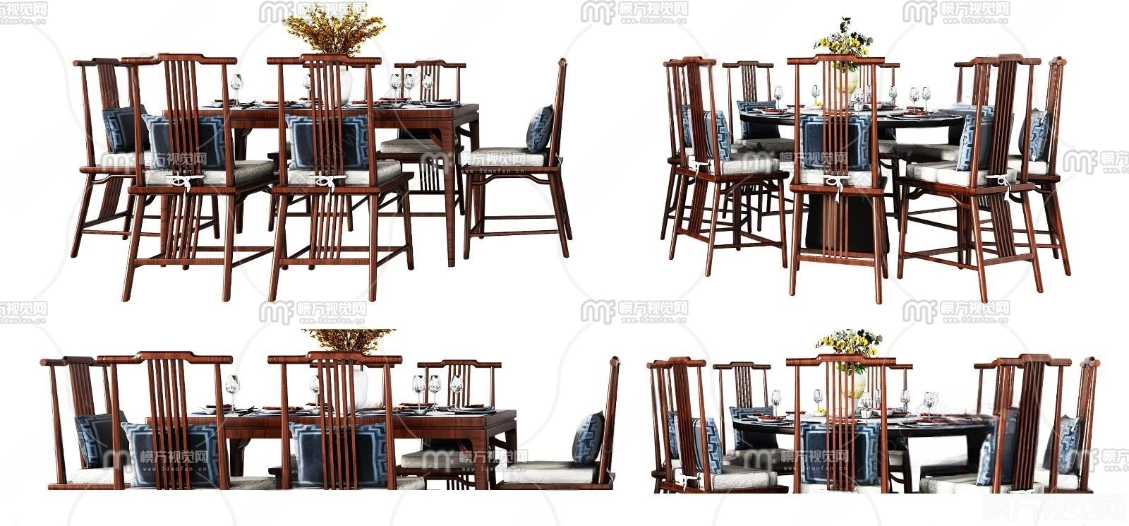 新中式餐桌椅组合3D模型(ID:0013903)