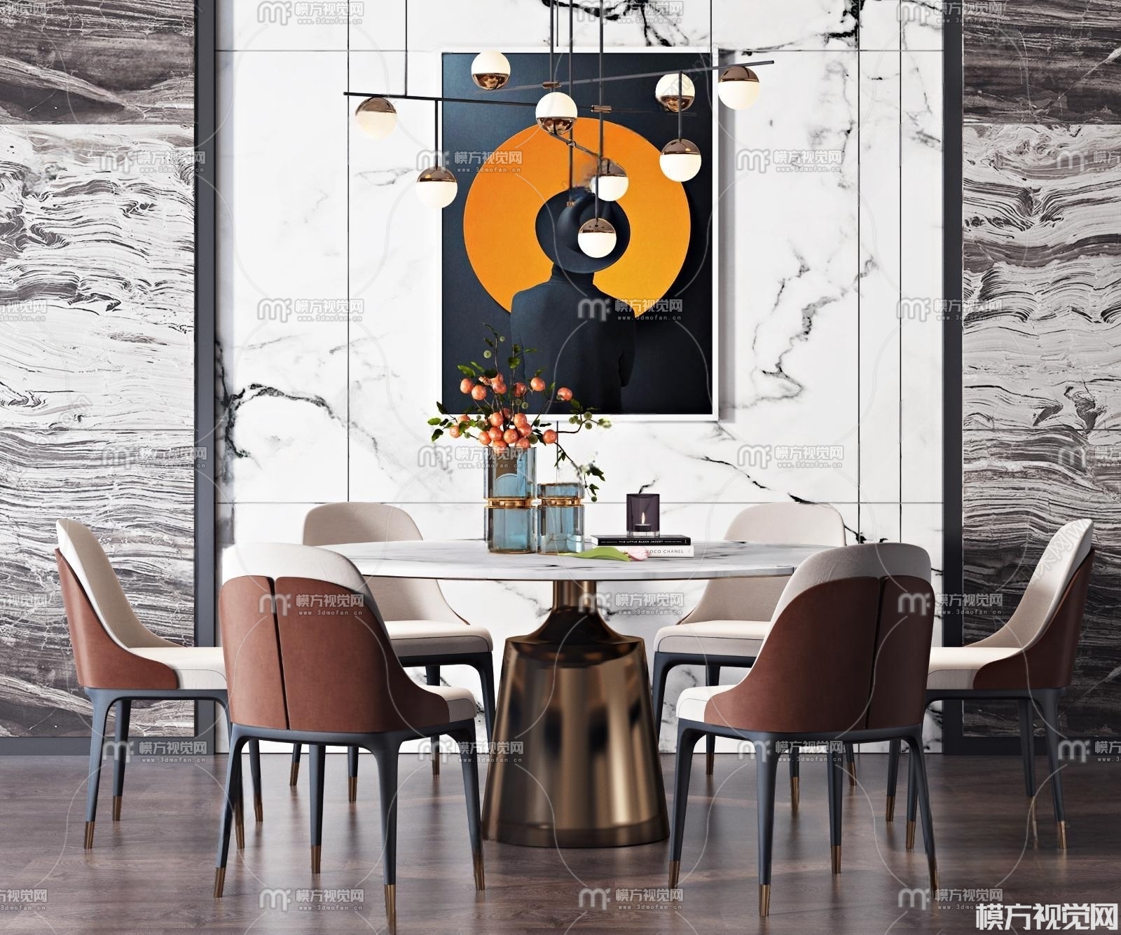 现代餐桌椅组合3D模型(ID:0013909)