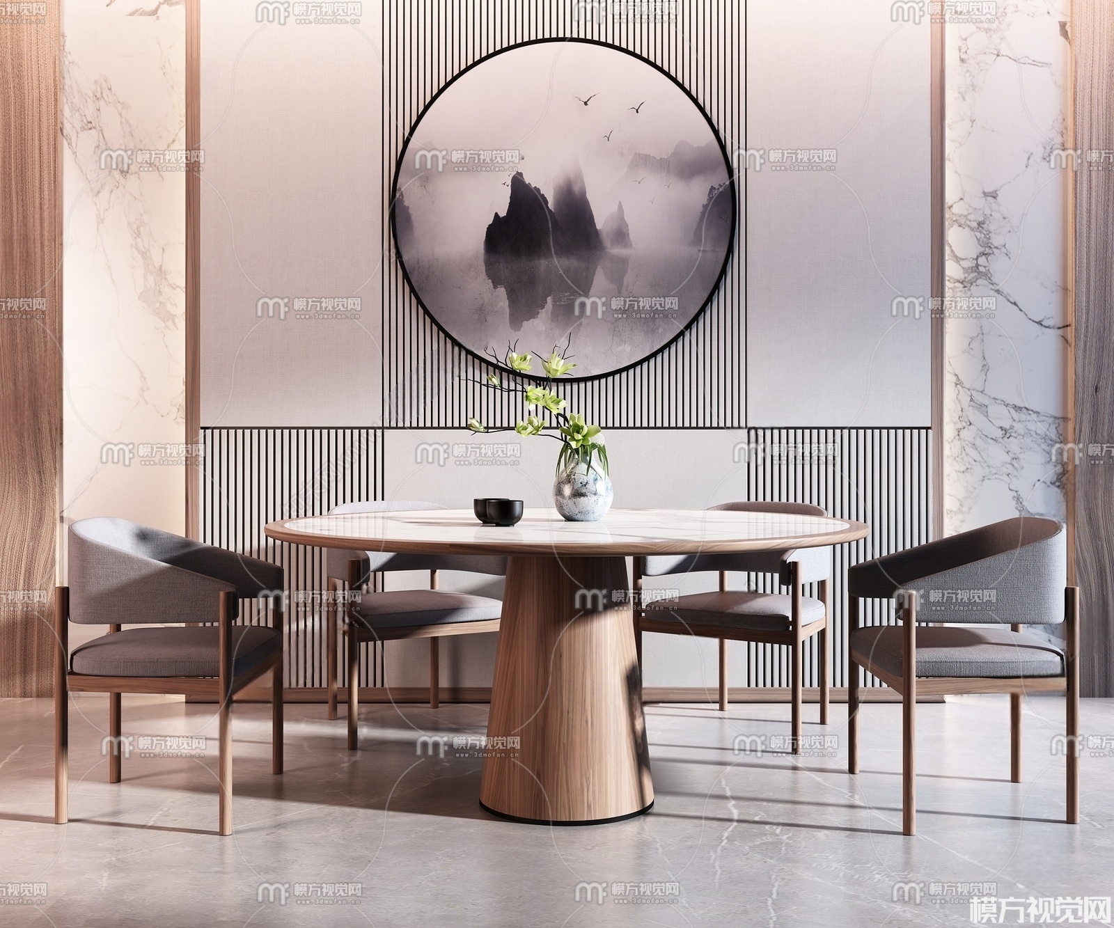 新中式圆形餐桌椅组合3D模型(ID:0013918)