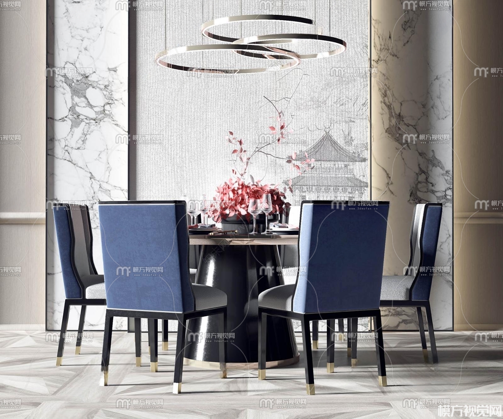 新中式餐桌椅组合3D模型(ID:0013933)
