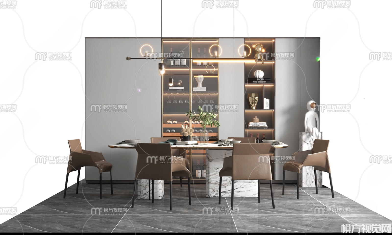 现代餐桌椅酒柜组合3D模型(ID:0013970)