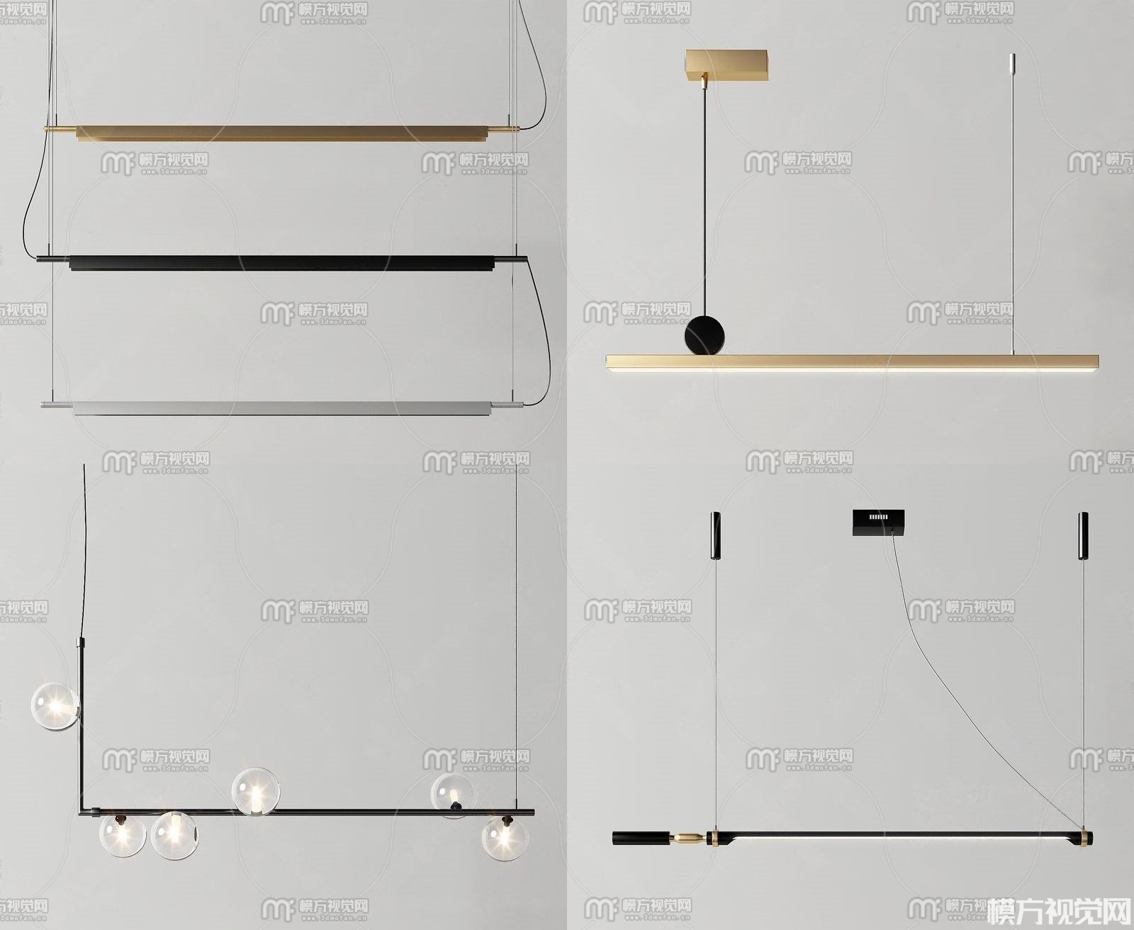 现代创意线性吊灯组合3D模型(ID:0000140)
