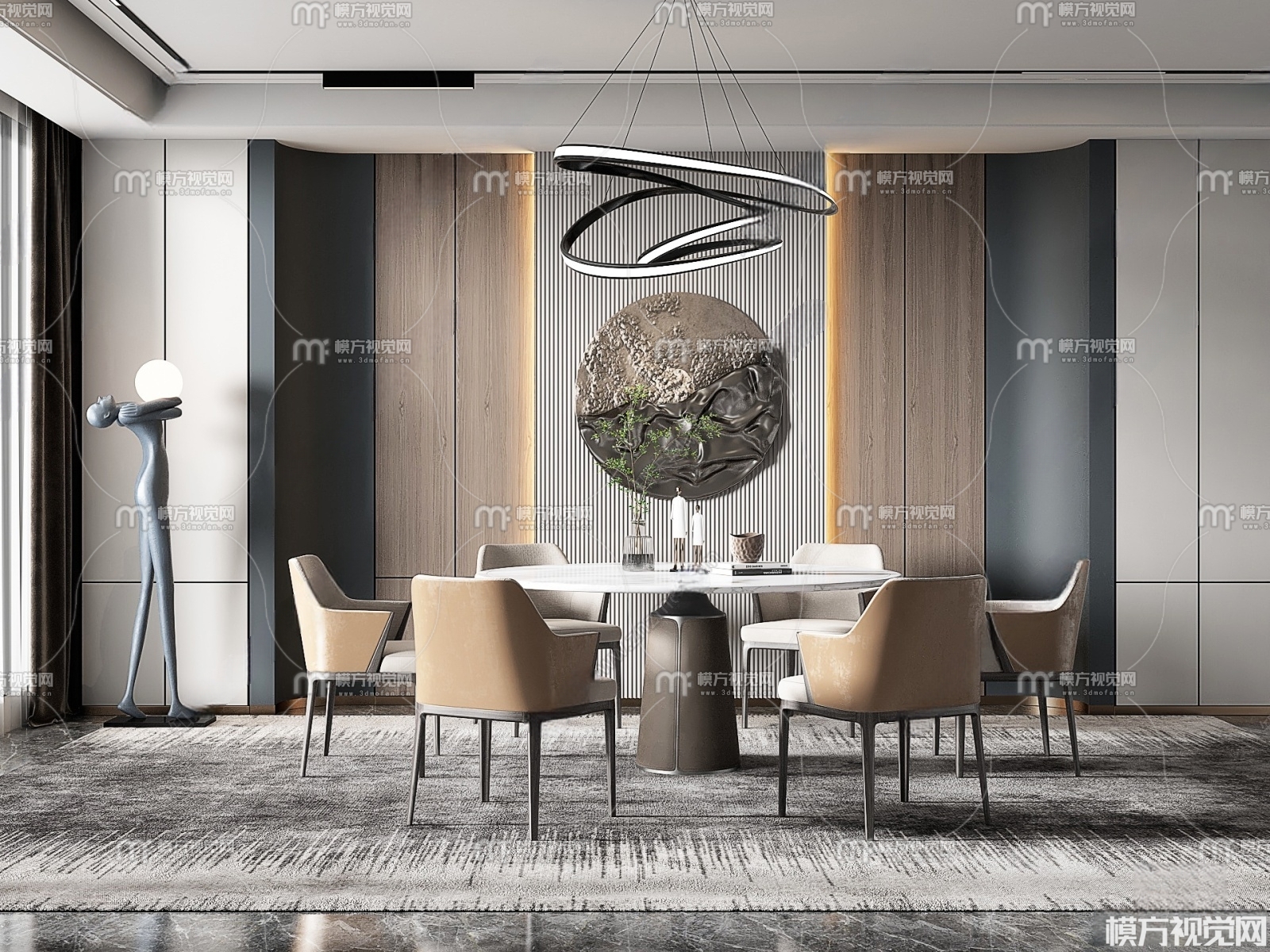 现代圆形餐桌椅组合3D模型(ID:0014001)