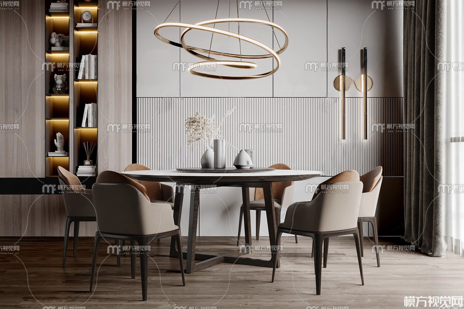 现代圆形餐桌椅组合3D模型(ID:0014004)