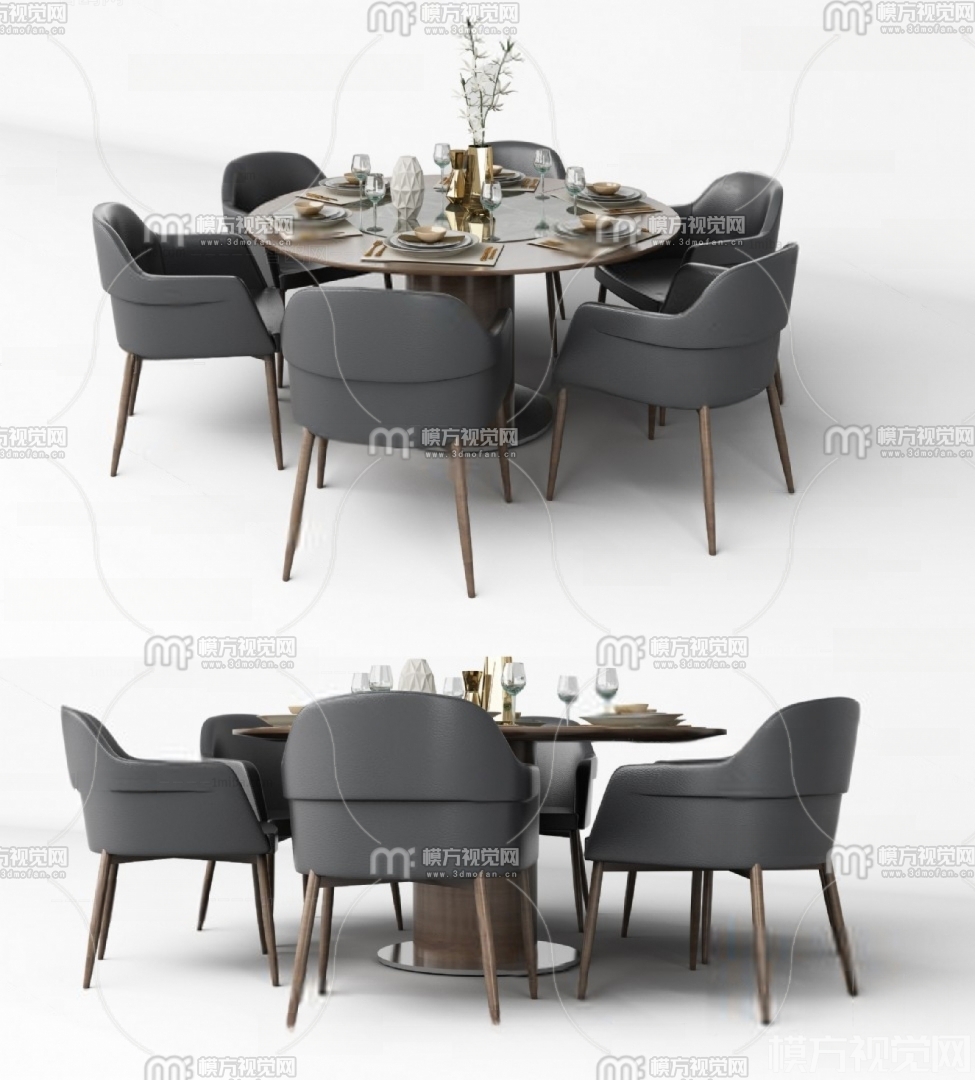 现代餐桌椅组合3D模型(ID:0014018)