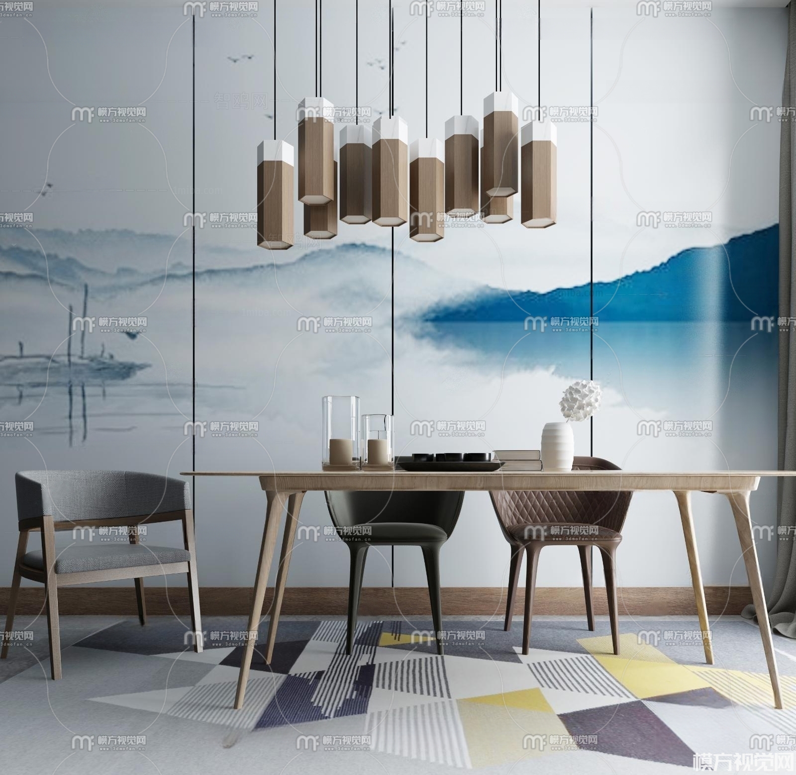 新中式餐桌椅组合3D模型(ID:0014045)