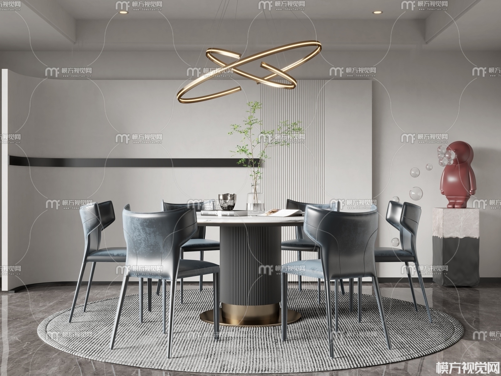 现代圆形餐桌椅3D模型(ID:0014050)