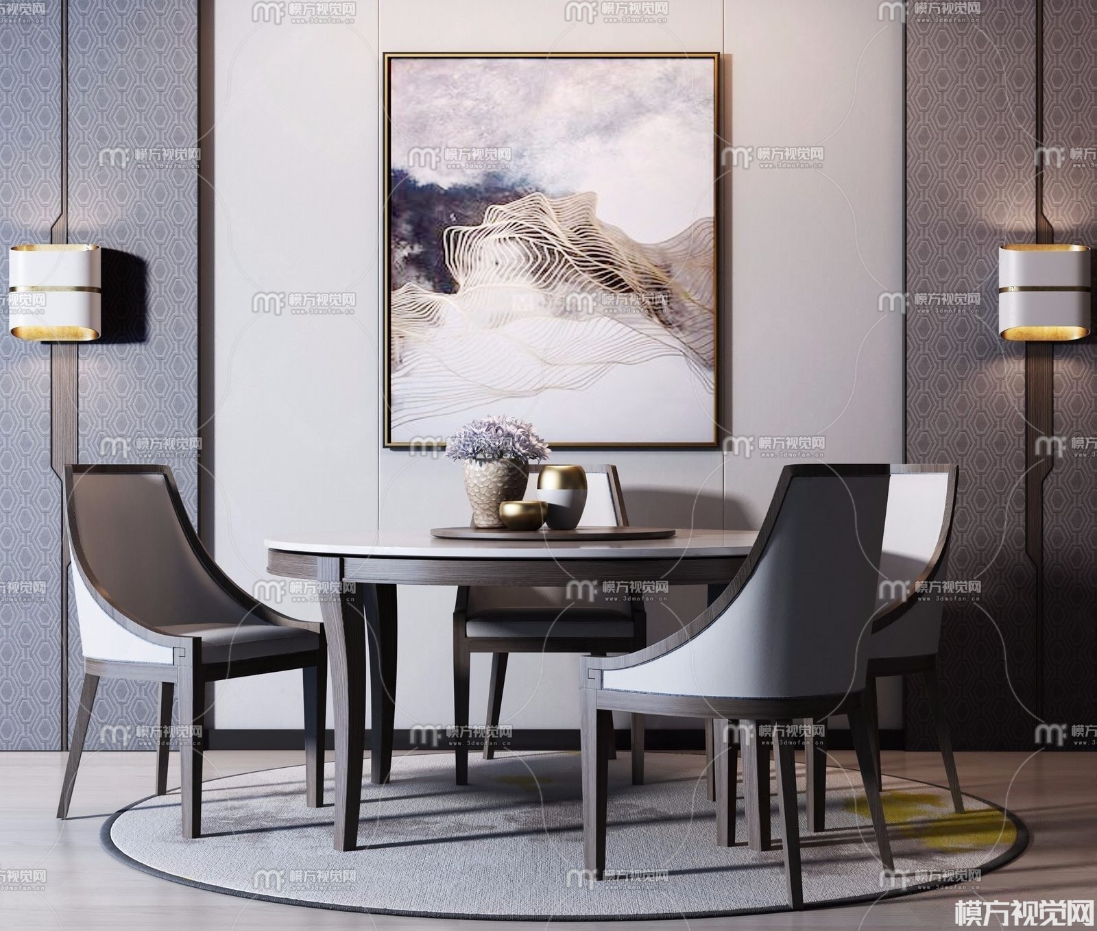 新中式圆形餐桌椅组合3D模型(ID:0014067)