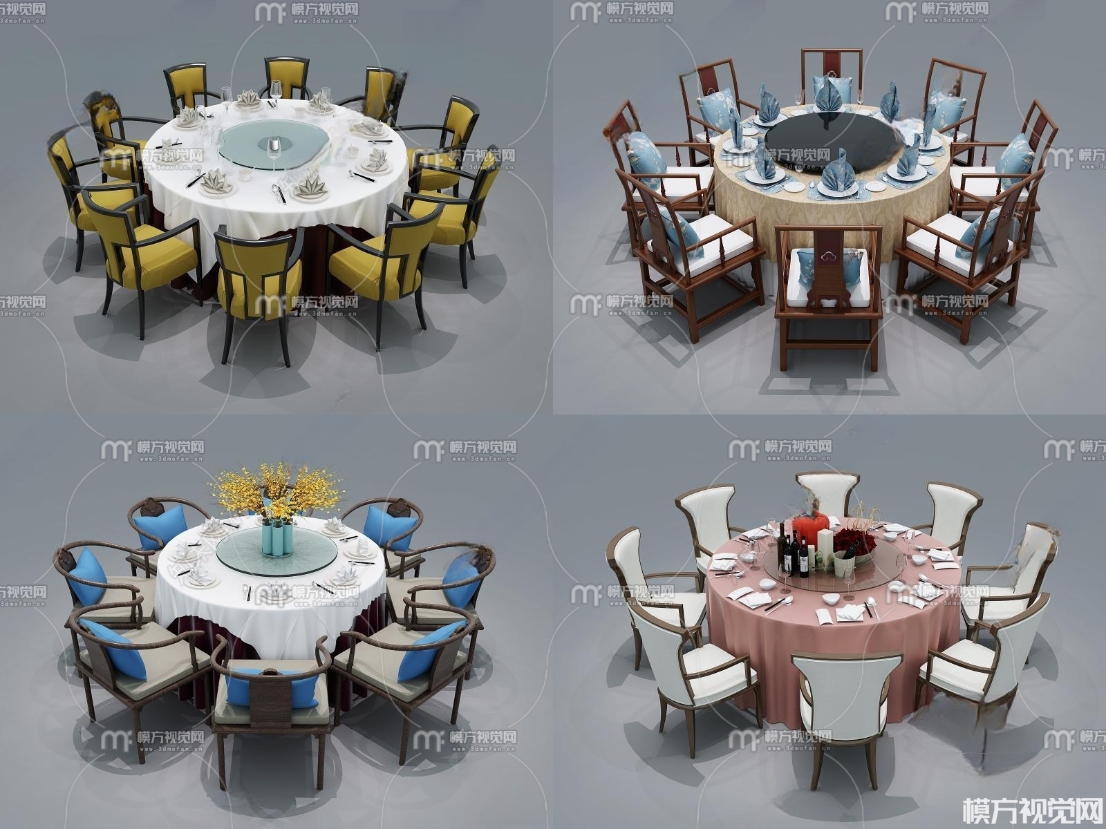 新中式圆形餐桌椅组合3D模型(ID:0014078)