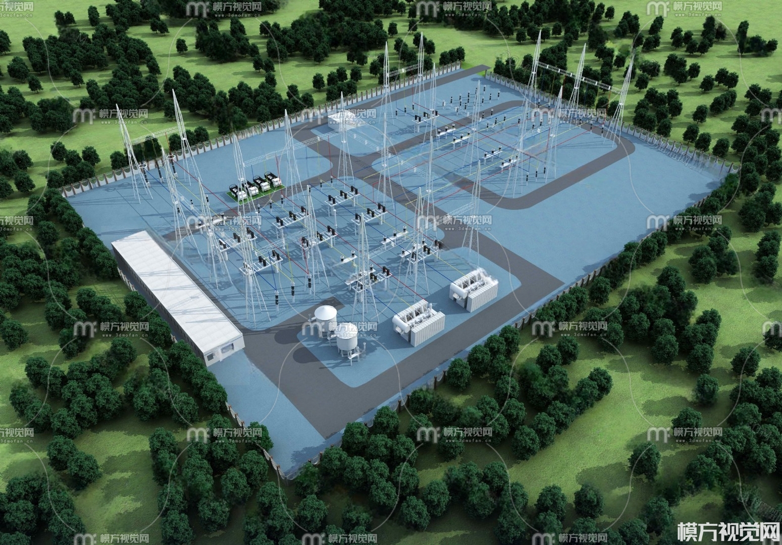 现代变电站鸟瞰3D模型(ID:0001411)