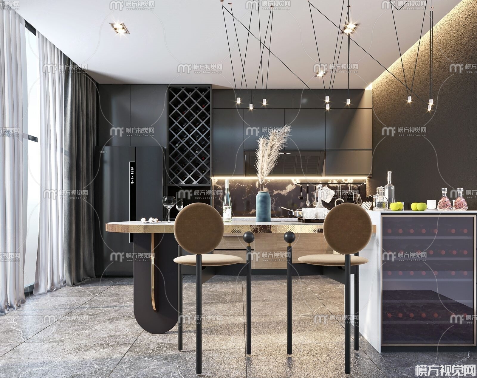 现代厨房吧台3D模型(ID:0014130)