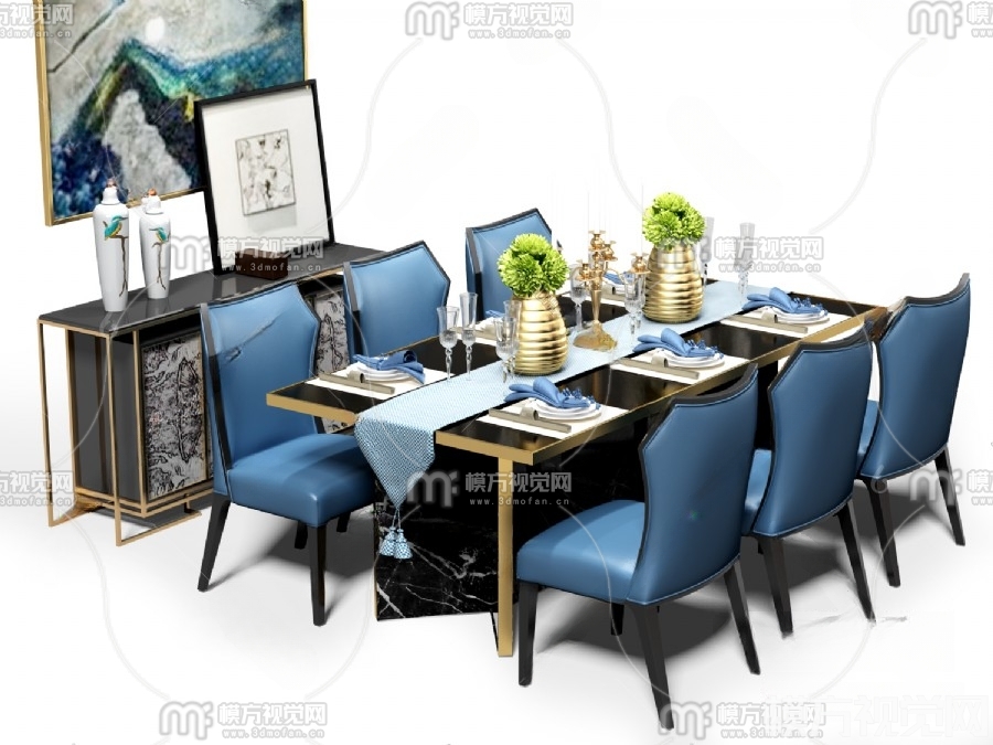 现代餐桌椅 边柜组合3D模型(ID:0001414)