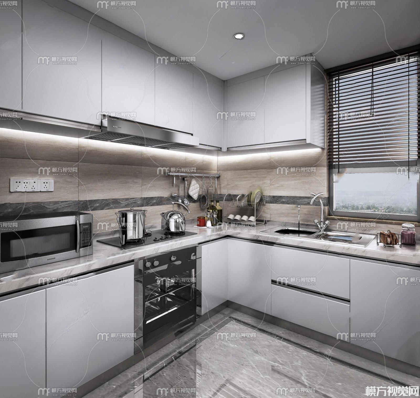 现代厨房橱柜3D模型(ID:0014140)