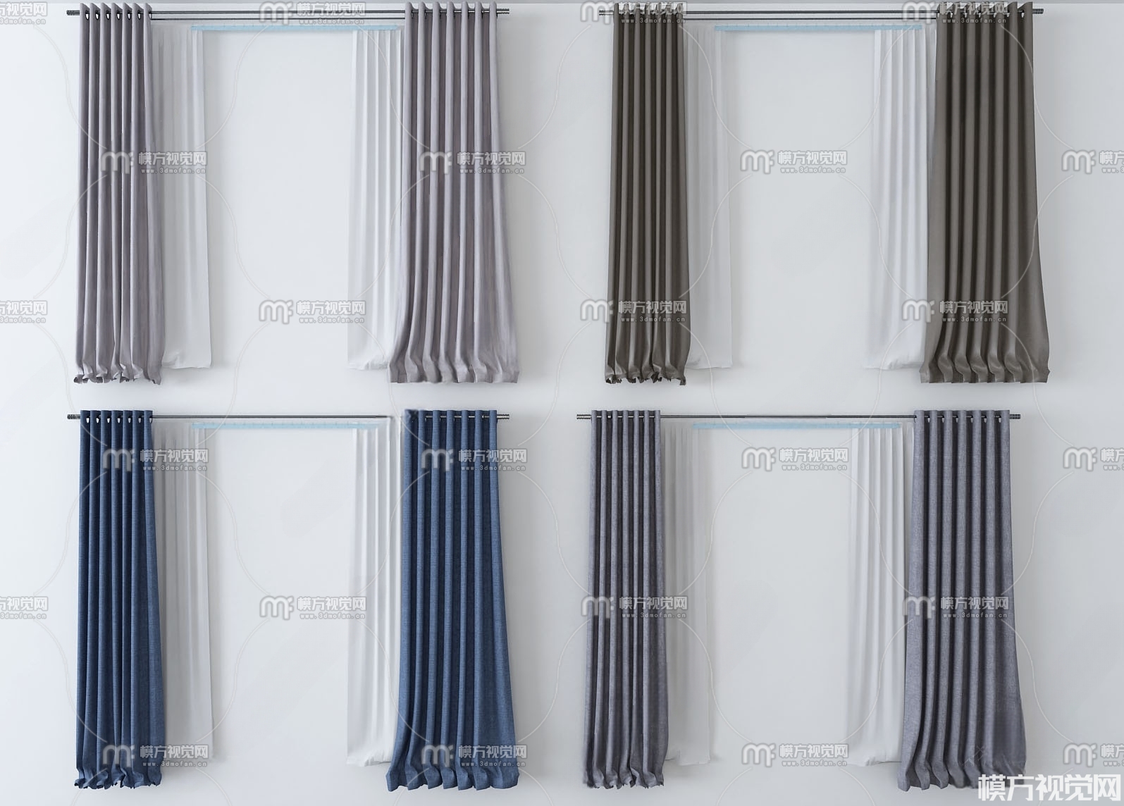 现代布艺窗帘组合3D模型(ID:0014191)