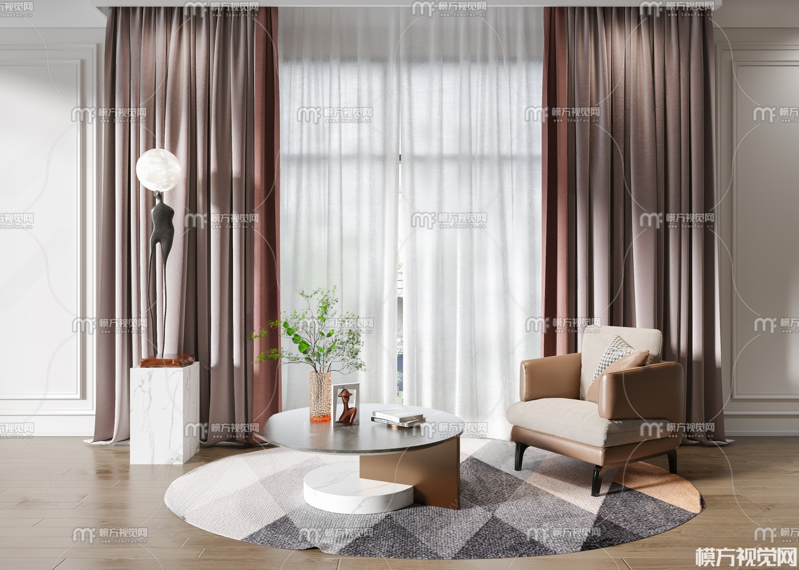 现代窗帘休闲椅组合3D模型(ID:0014199)