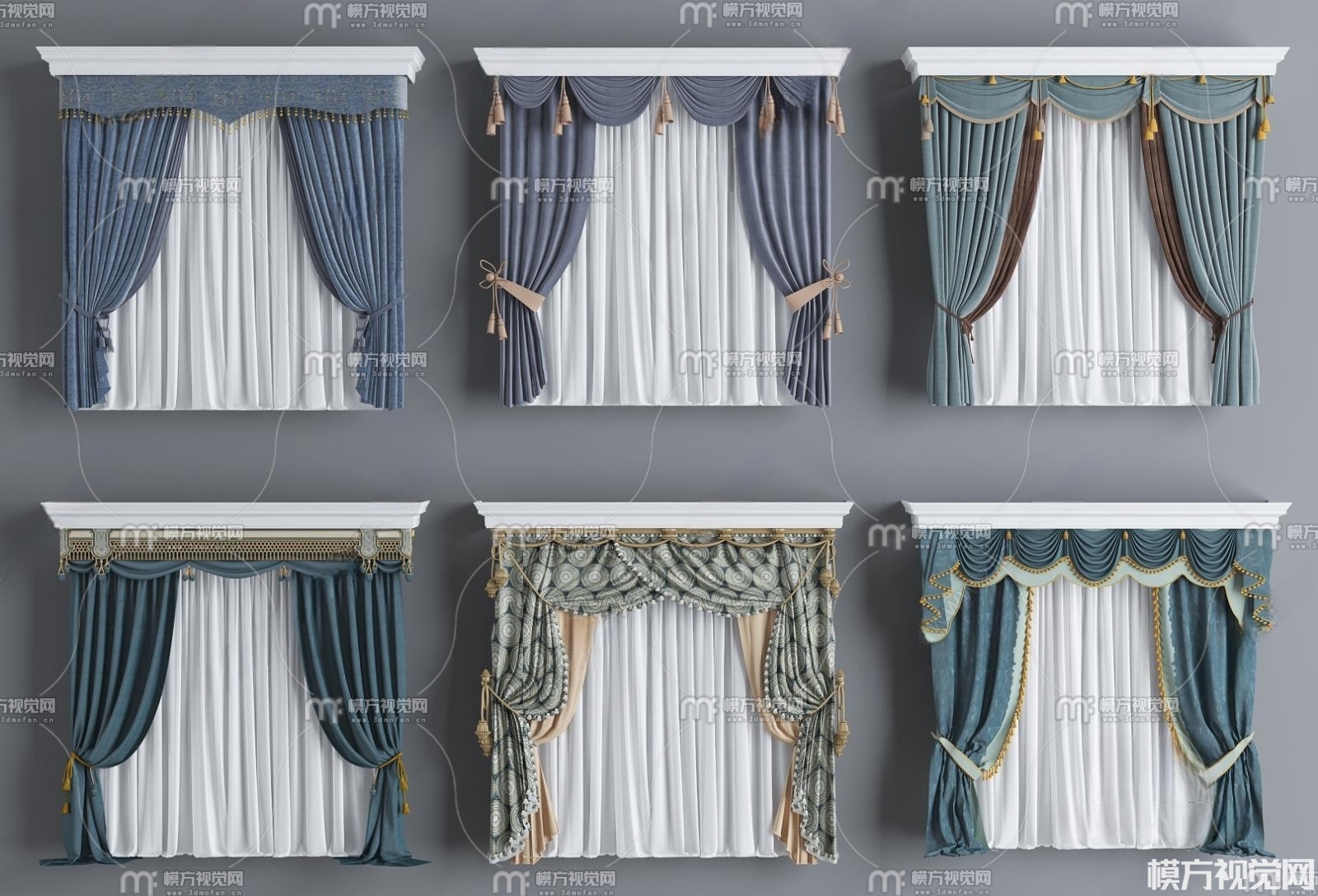 简欧布艺窗帘组合3D模型(ID:0014205)