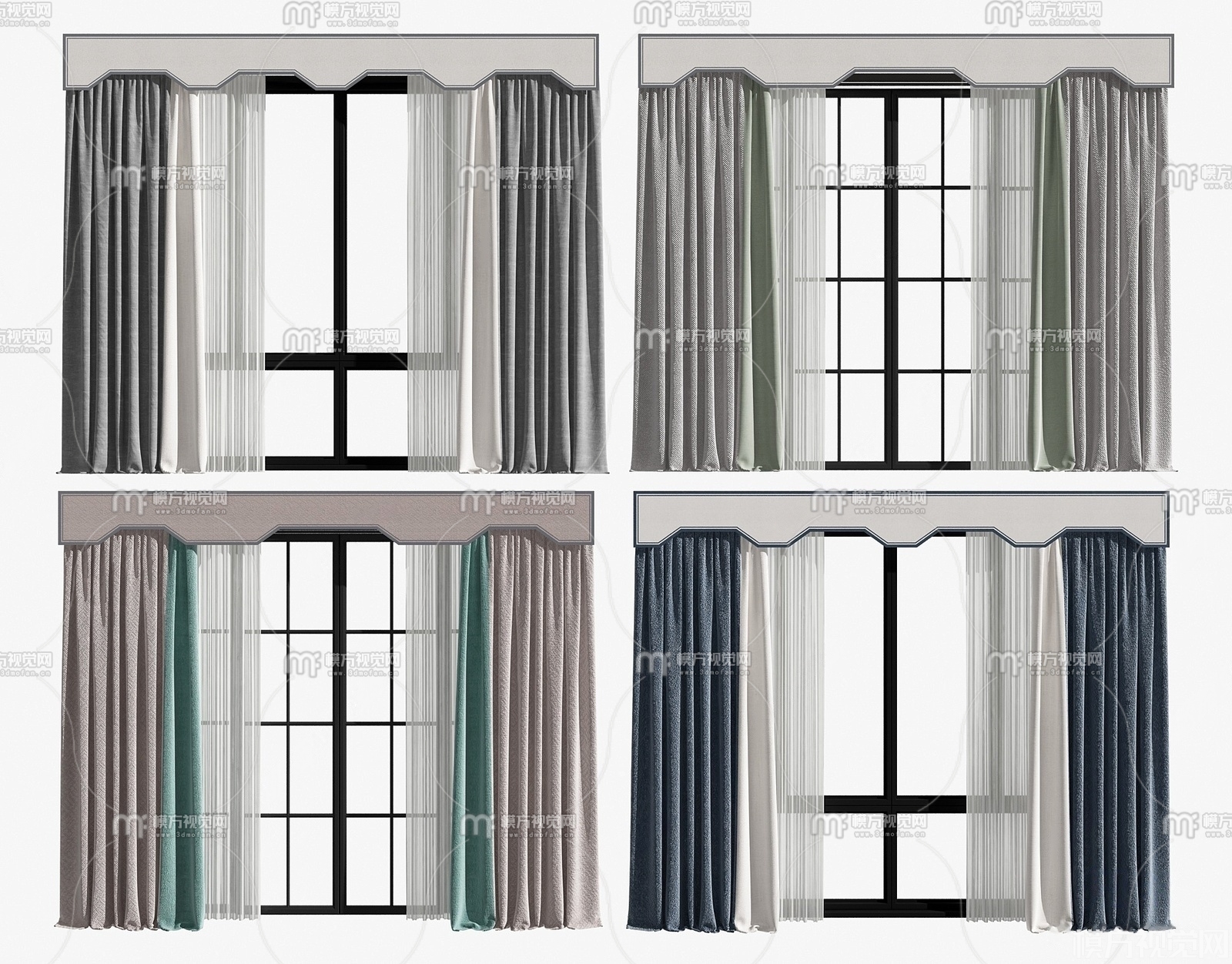 现代窗帘组合3D模型(ID:0014224)