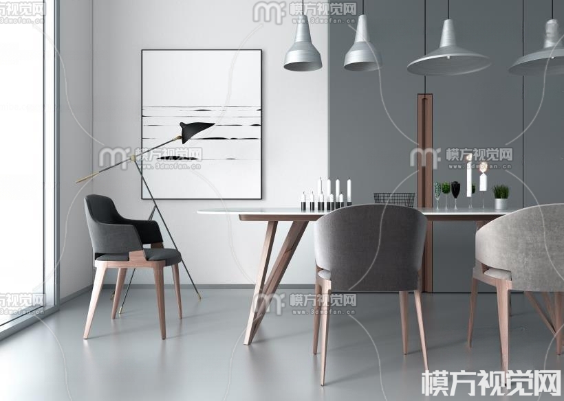 北欧餐桌椅 吊灯组合3D模型(ID:0001434)