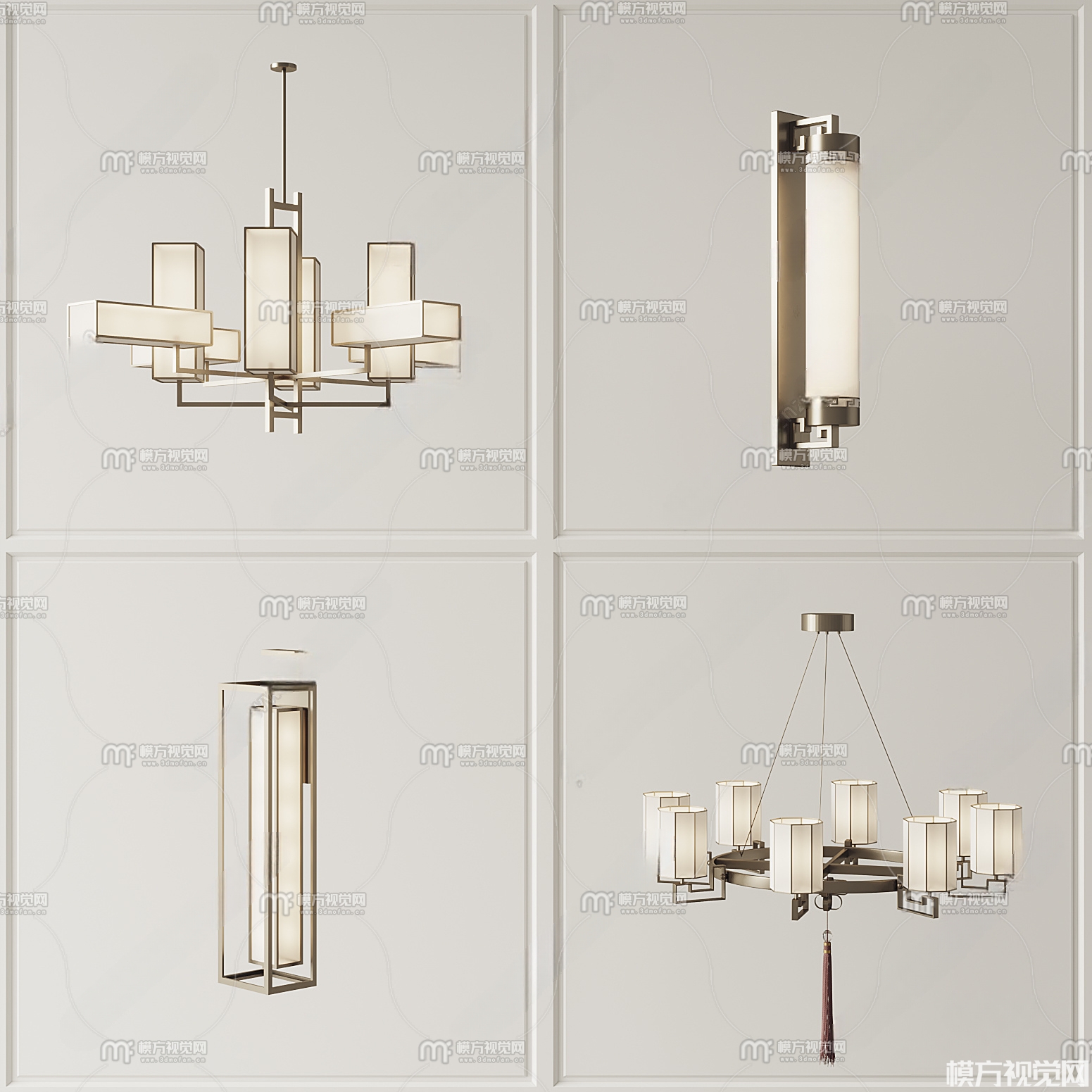 新中式吊灯壁灯组合3D模型(ID:0014373)