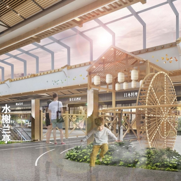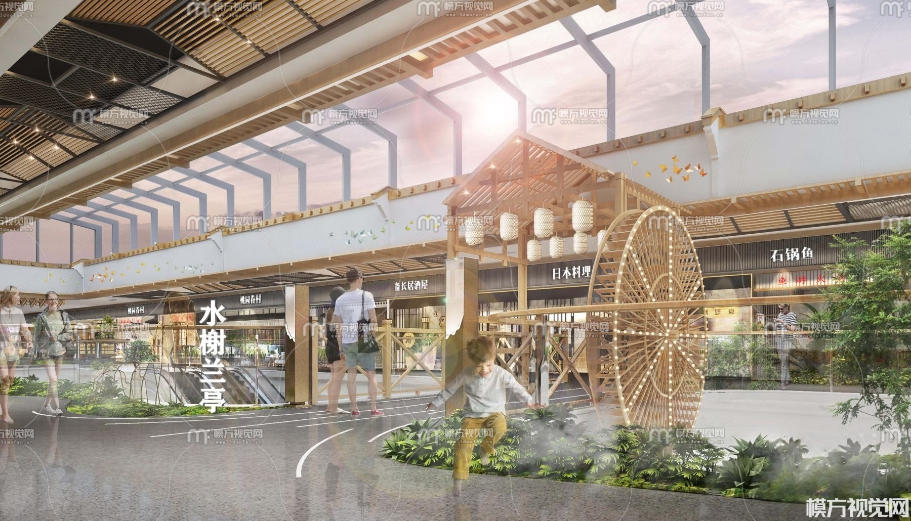 新中式商场走廊餐饮区3D模型(ID:0014422)