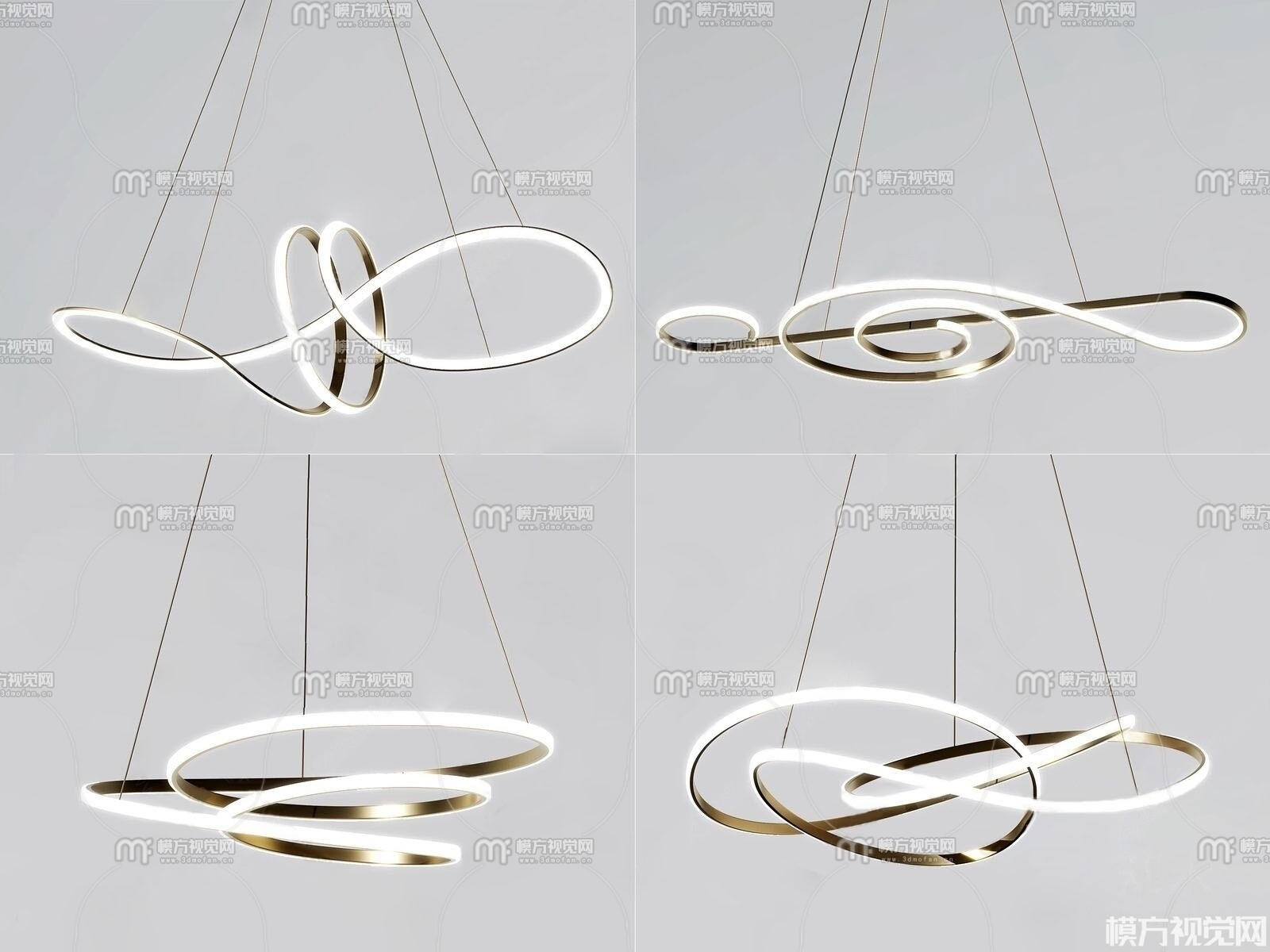 现代金属环形吊灯组合3D模型(ID:0014458)