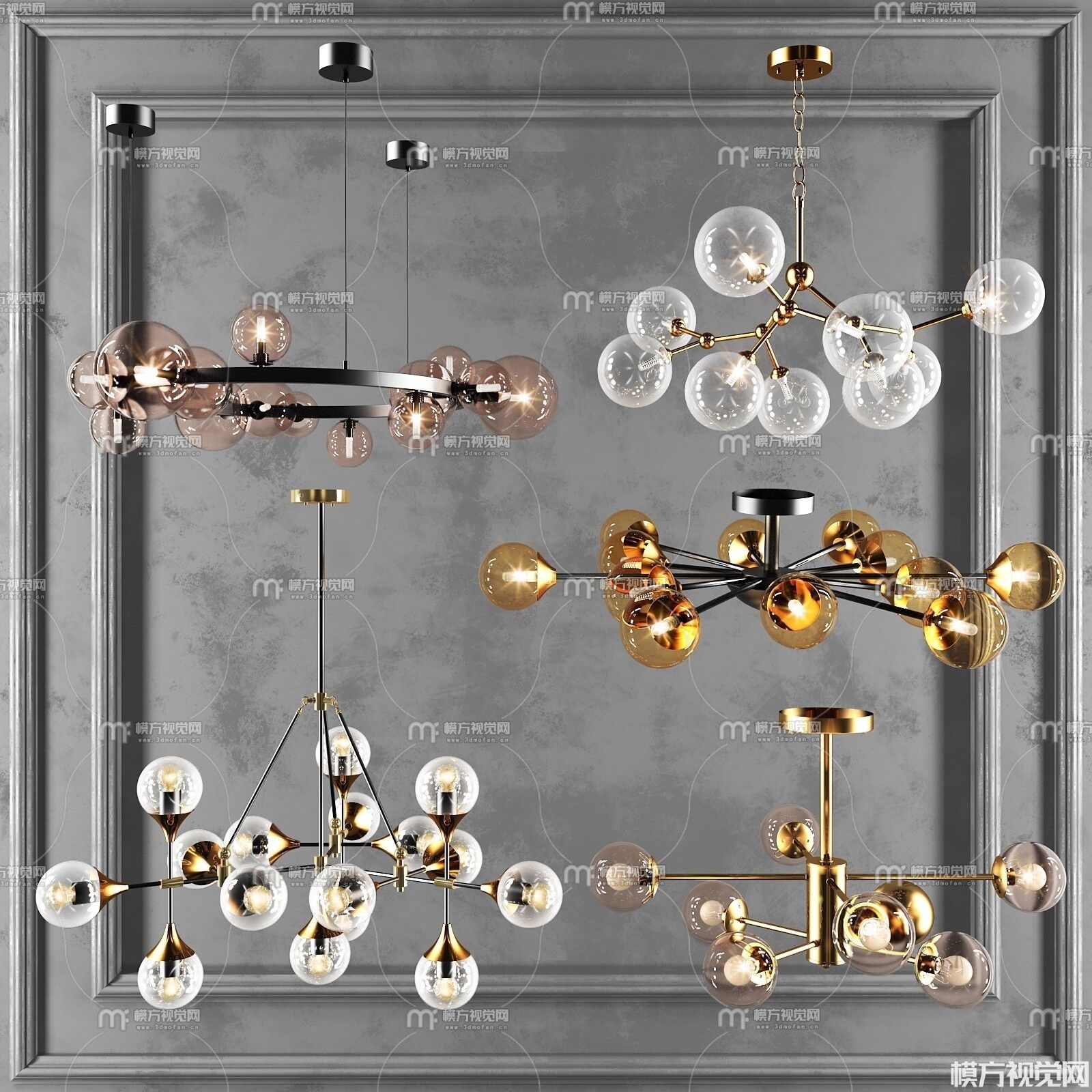 现代轻奢玻璃吊灯组合3D模型(ID:0014461)