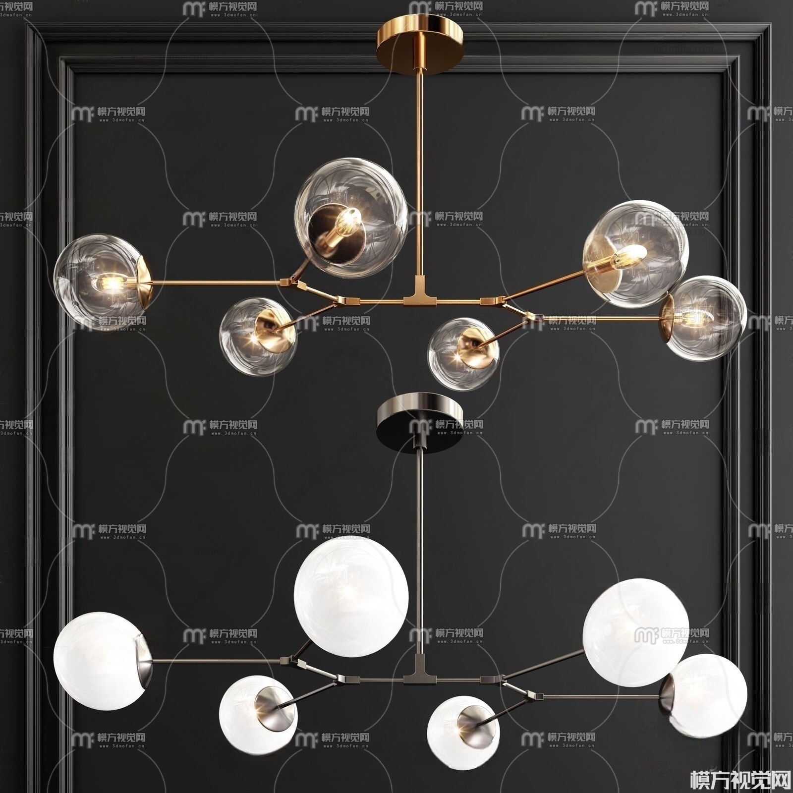 现代金属玻璃灯泡吊灯3D模型(ID:0014493)